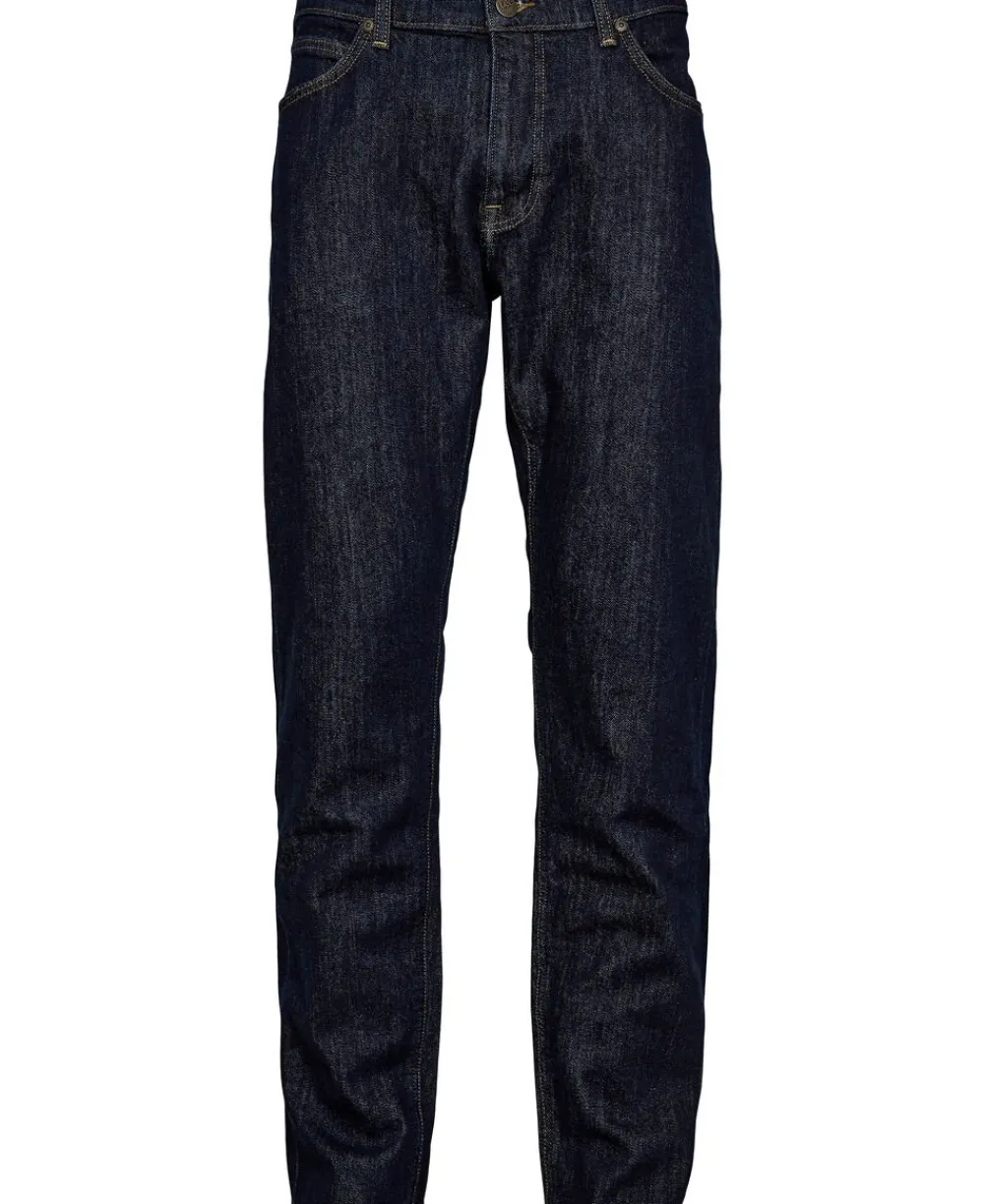 Daren er en meget populær regular fit jeans med lige ben. Disse jeans er en ægte moderne klassiker med mellemhøj talje med lynlås og en straight fit pasform fra lår ned til ankel. Daren er et musthave i garderoben med en pasform, der ikke er for smal eller for bred. Denne klassiske blå jeans er konstrueret med indvævet stretch, hvilket giver en meget behagelig komfort. Den mørkeblå denim giver et meget stilrent udtryk, og gør denne jeans anvendelig og brugbar både til hverdag og fest. Kontrastsyningerne har en varm gylden farve, der komplementerer den blå denim, mens knapperne og nitterne glimter med en messingfarve. Klassisk stil med fem lommer.