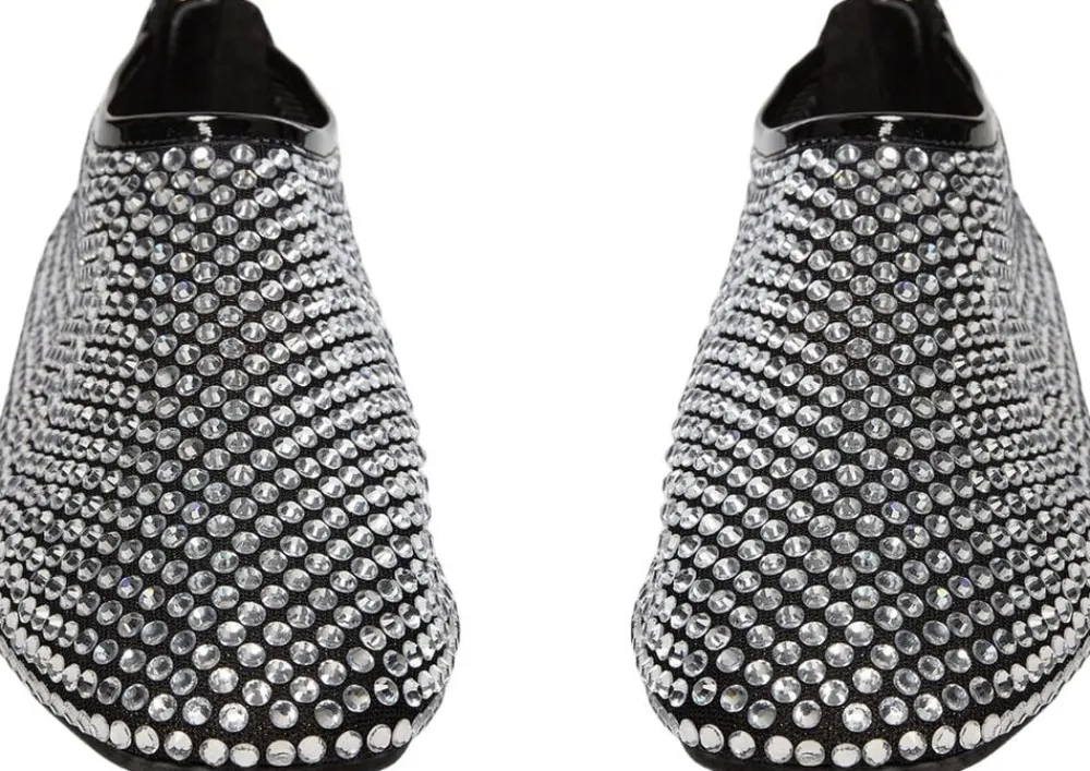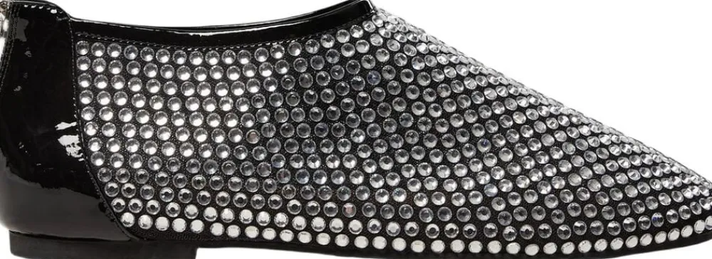 • Ballerina i mesh • Dækket med rhinsten • Rund tå • Lynlåslukning bagpå • Sort lakeret look • Flad sål • 85% mesh, 15% læder