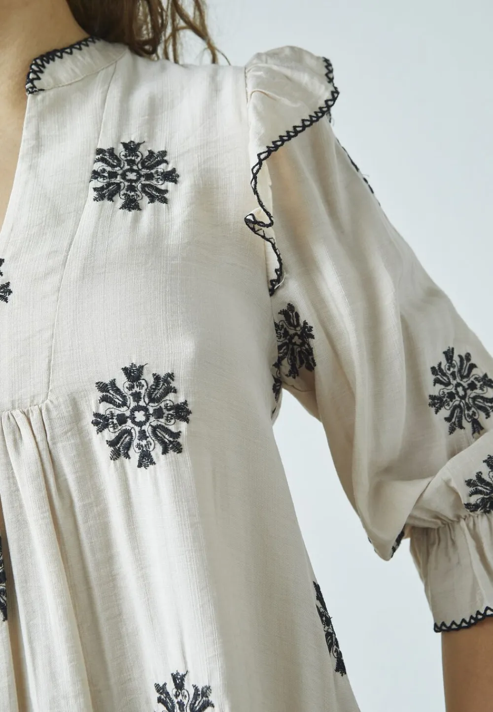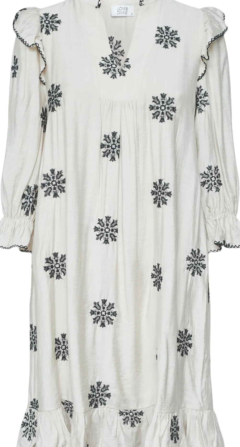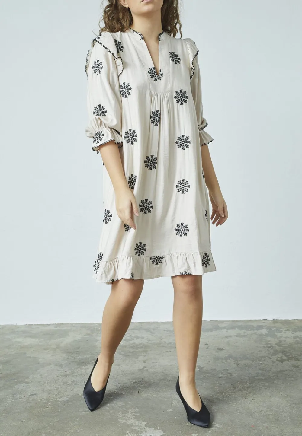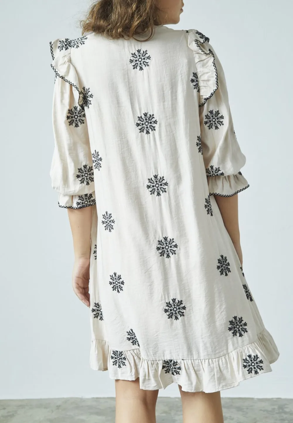 – Smukke detaljer: De fine broderede elementer tilføjer et kunstnerisk præg, der gør kjolen til et iøjnefaldende valg, uanset hvor du går.