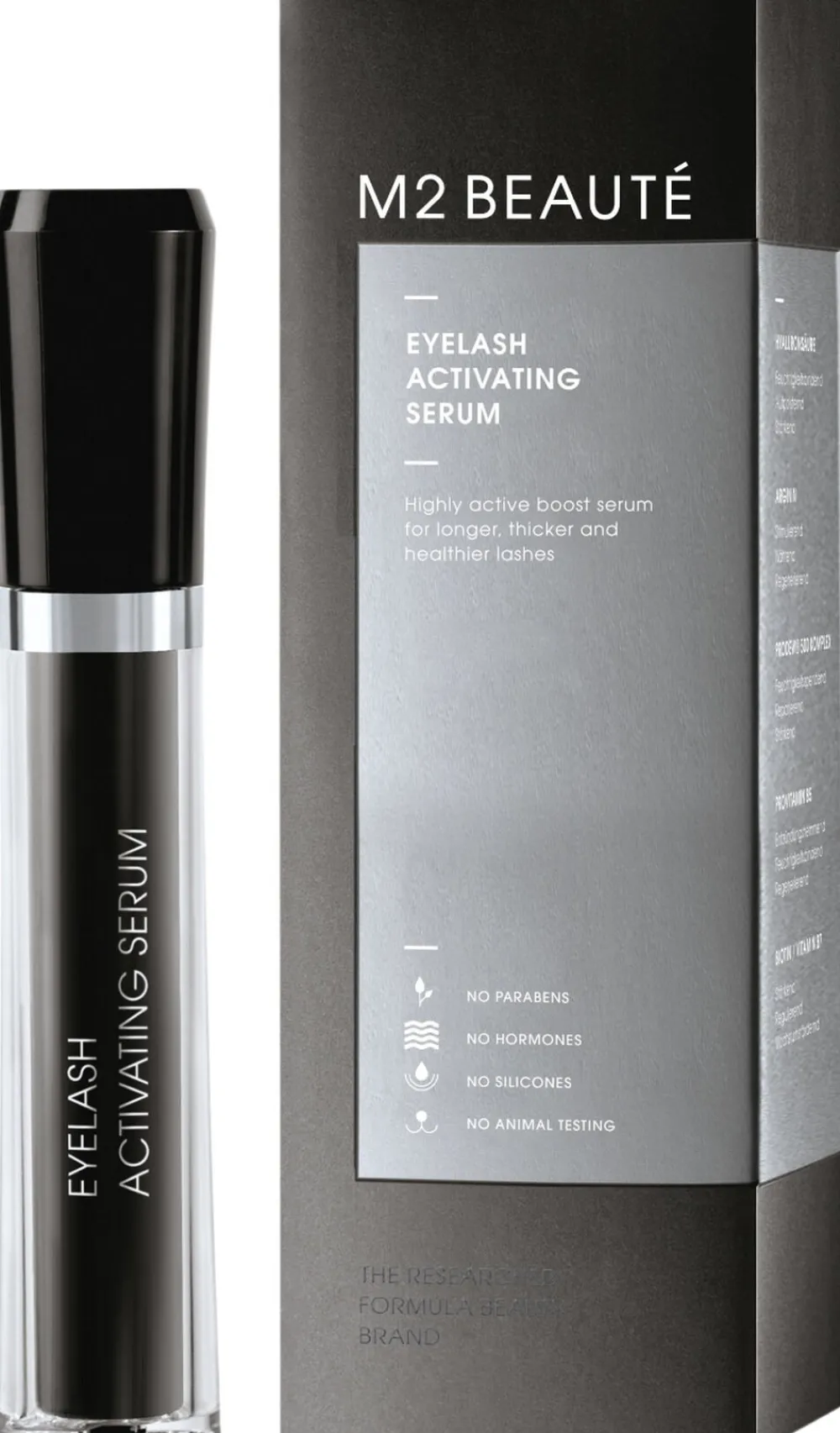 Vi garanterer, at alle M2 BEAUTÉ-produkter ikke indeholder hormoner! Den aktive ingrediens, der anvendes i EYELASH ACTIVATING SERUM, er hverken et hormon eller et hormonderivat – den kemiske struktur af den syntetisk fremstillede aktive ingrediens adskiller sig væsentligt fra den aktive ingrediens, som har oprindelse i øjenmedicin. Den kan derfor ikke interagere med celler, der har de tilsvarende receptorstrukturer – en udløsning af hormonelle reaktioner er beviseligt fuldstændig umulig. Dette er blevet bekræftet i forskellige undersøgelser fra uafhængige institutter, herunder Bund für Umwelt und Naturschutz Deutschland e.V. (BUND) eller i TOXFOX-undersøgelsen af hormonaktive stoffer i kosmetiske produkter. Yderligere information er tilgængelig her: www.bund.net/chemie/toxfox/kosmetikprodukte