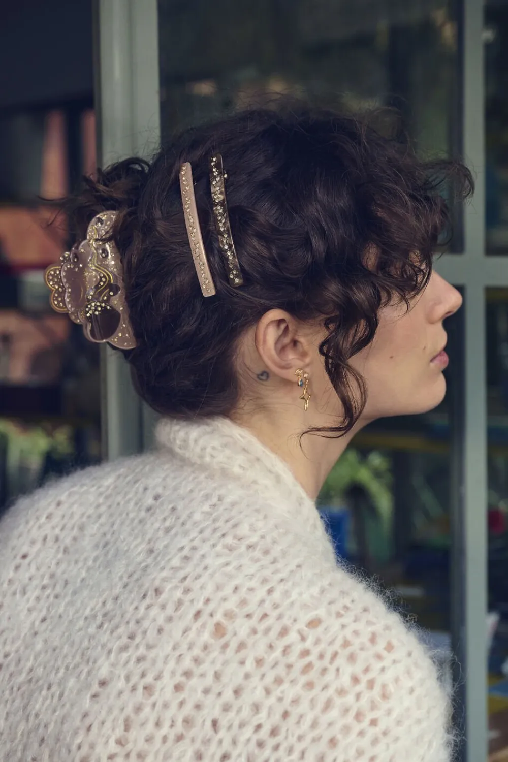 Følg elegancens delikate linje med vores Juin Hårklips – et lille hårspænde der tilføjer den rette mængde glimmer til din dag.