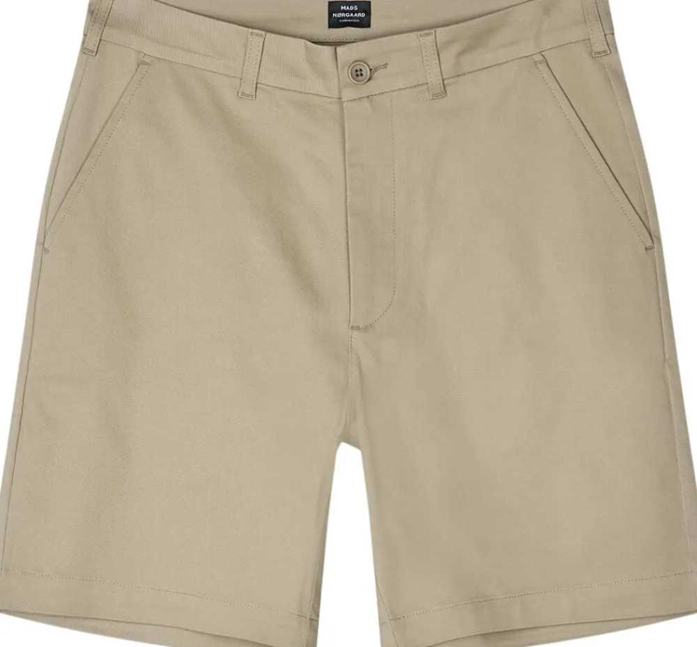 Chinoshorts i sprød bomuldstwill med lidt stretch. Pasformen er regular, linningen er fast med bæltestropper, og lommerne er skrålommer og skjult baglomme.