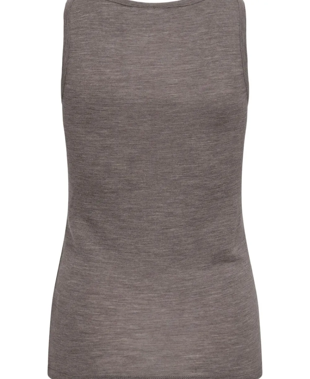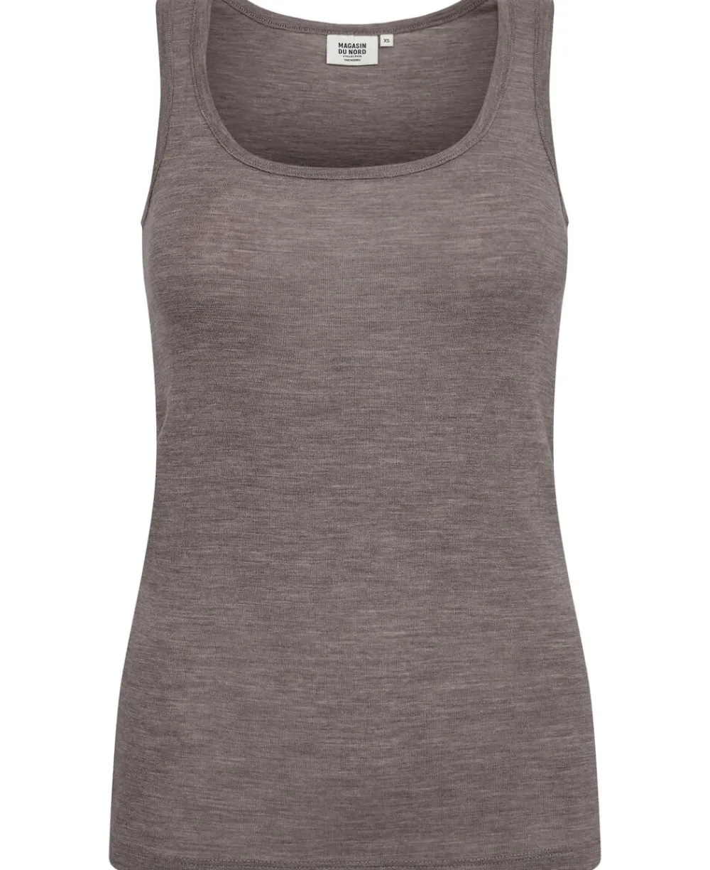 Top fra Magasin du Nord Collection i den blødeste kvalitet af 100% uld med RWS- og OEKO-TEX® STANDARD 100-certificering. Toppen er enkel i modellen med brede skulderstropper, en smal ribkant i den runde halsudskæring samt en komfortabel, tætsiddende pasform. En skøn top i den absolut lækreste kvalitet.
