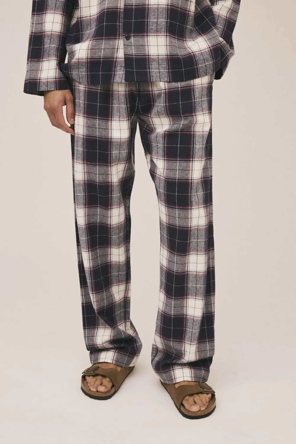 Pyjamasbukser fra Magasin du Nord Collection i den blødeste kvalitet af 100% økologisk bomuld med GOTS-certificering. Bukserne har et klassisk, ternet print, elastik og snøre i taljen, sidelommer, en enkelt baglomme samt lige bukseben. Et par casual pyjamasbukser i den lækreste kvalitet.