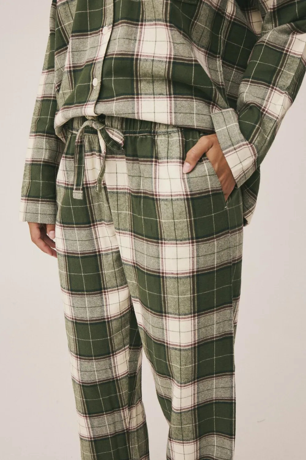 Pyjamasbukser fra Magasin du Nord Collection i den blødeste kvalitet af 100% økologisk bomuld med GOTS-certificering. Bukserne er enkle i modellen med det fineste, ternede print, elastik og snøre i taljen, sidelommer, en enkelt baglomme samt en løs pasform. Et par skønne pyjamasbukser i den absolut lækreste kvalitet.