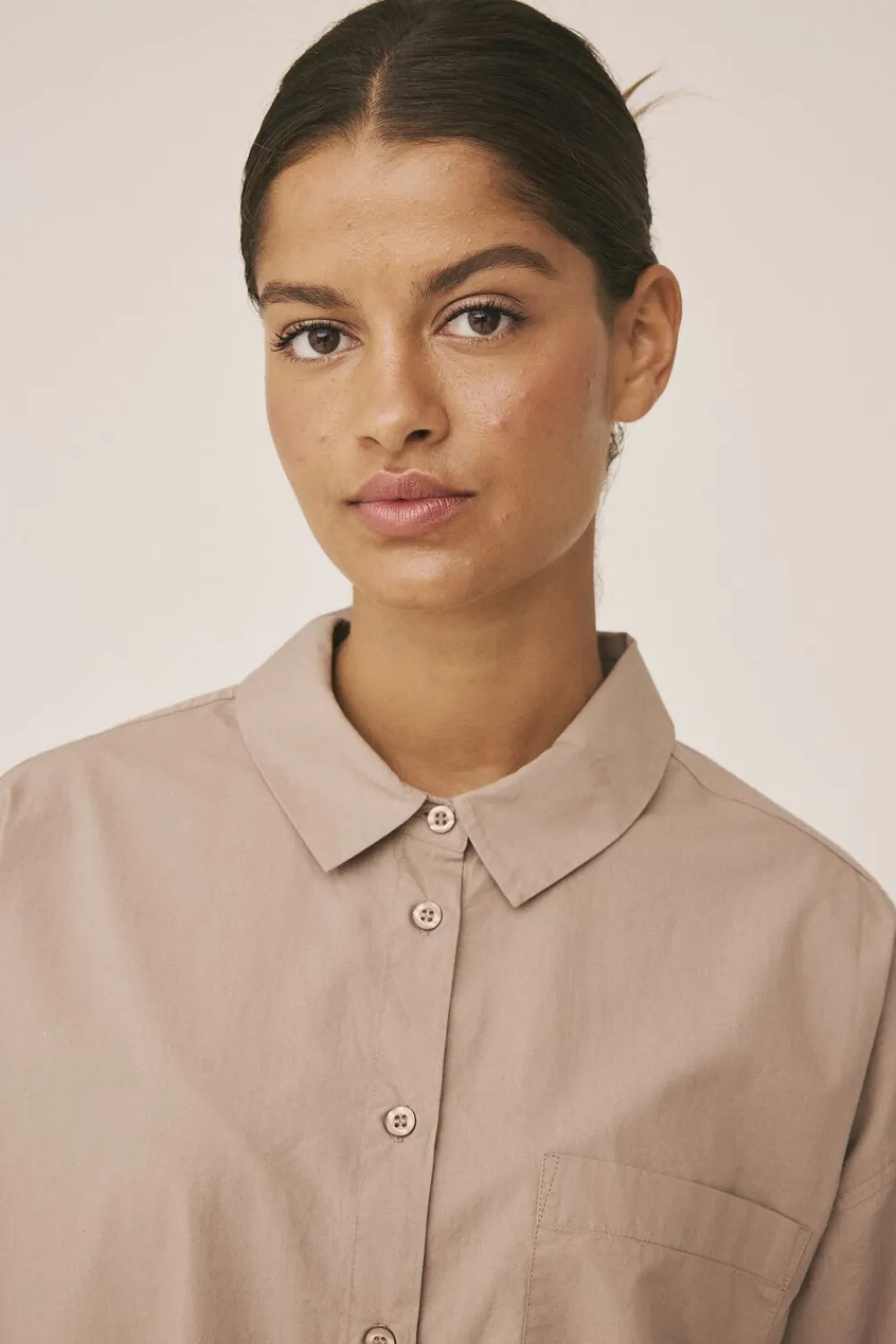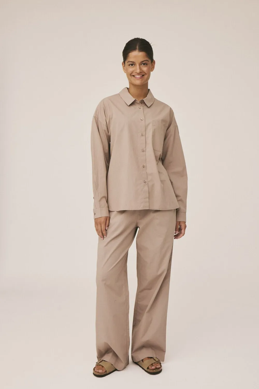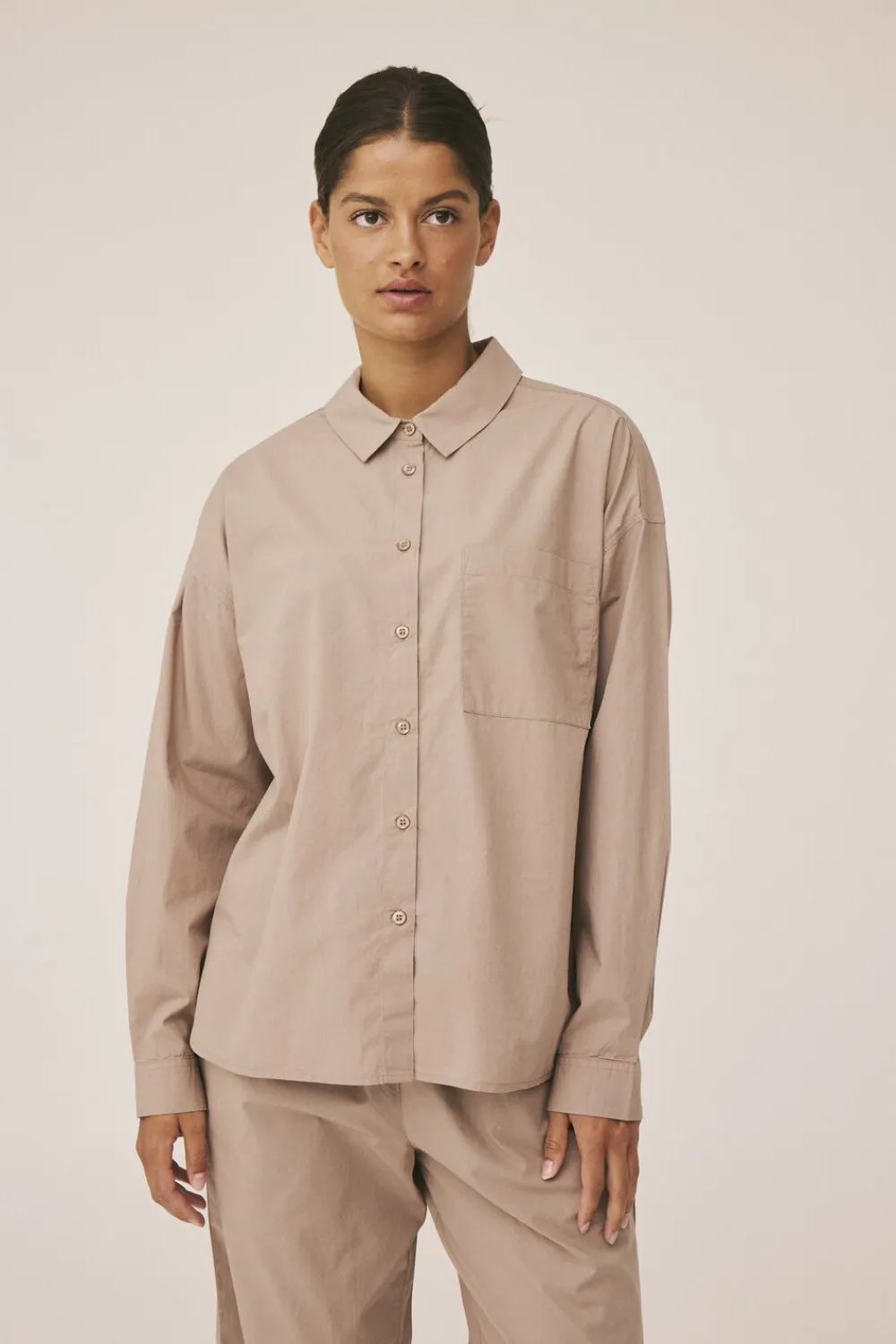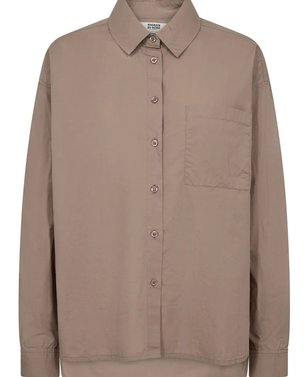 Skjorte fra Magasin du Nord Collection i den blødeste kvalitet af 100% økologisk bomuld med GOTS-certificering. Skjorten har det fineste, stribede print, knaplukning på fronten, en enkelt brystlomme, afrundede slidser i siden samt lange ærmer med ’drop shoulders’, der fremhæver den vide pasform. En skøn skjorte i en blød kvalitet. Se også de andre fine styles i samme serie.