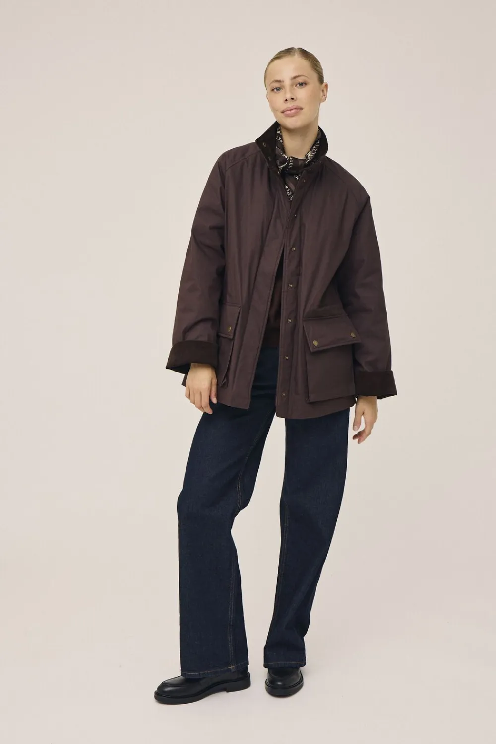 Vatteret jakke fra Magasin du Nord Collection i den lækreste kvalitet af 50% genanvendte fibre med GRS-certificering. Jakken er enkel i modellen med en coated overflade, et quiltet for, fløjlsdetaljer i kraven og de lange ærmer, frontlommer, en skjult trykknaplukning samt en lige pasform. En skøn jakke i en lækker kvalitet.