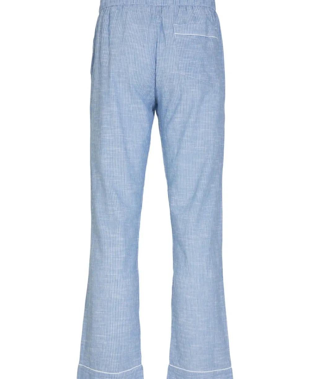 Bukser fra Magasin du Nord Collection i den blødeste kvalitet af økologisk, GOTS-certificeret bomuld. Bukserne er enkle i modellen med elastik og snøre i taljen, sidelommer samt fine piping-detaljer i de vidde bukseben. Økologisk bomuld kommer fra landbrug, hvor man arbejder med naturen på en måde så både økosystemer og biodiversitet opretholdes. Det betyder, at der ikke benyttes giftige kemikalier, at vandforbruget begrænses og at der i højere grad anvendes regnvand i produktionen. Når du vælger økologisk bomuld, er du derfor med til at værne om jordens ve og vel.