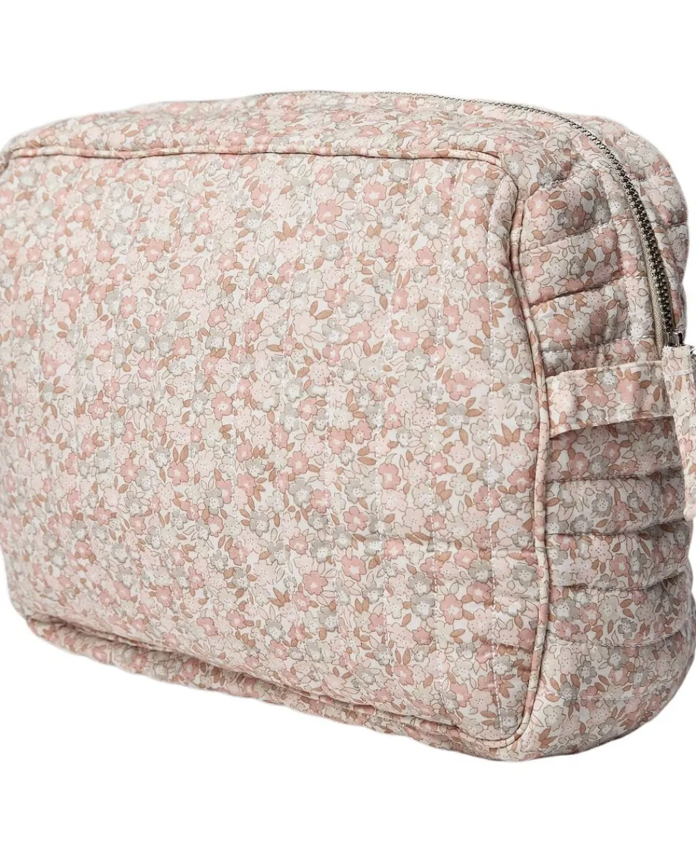 Toilettaske fra Magasin du Nord Collection i den blødeste kvalitet af 80% økologisk bomuld med GOTS-certificering. Toilettasken består af ét stort rum med lynlåslukning samt mindre inderlommer. Derudover har toilettasken fine vatterede syningsdetaljer og et stribet print. En skøn toilettaske i den lækreste kvalitet.