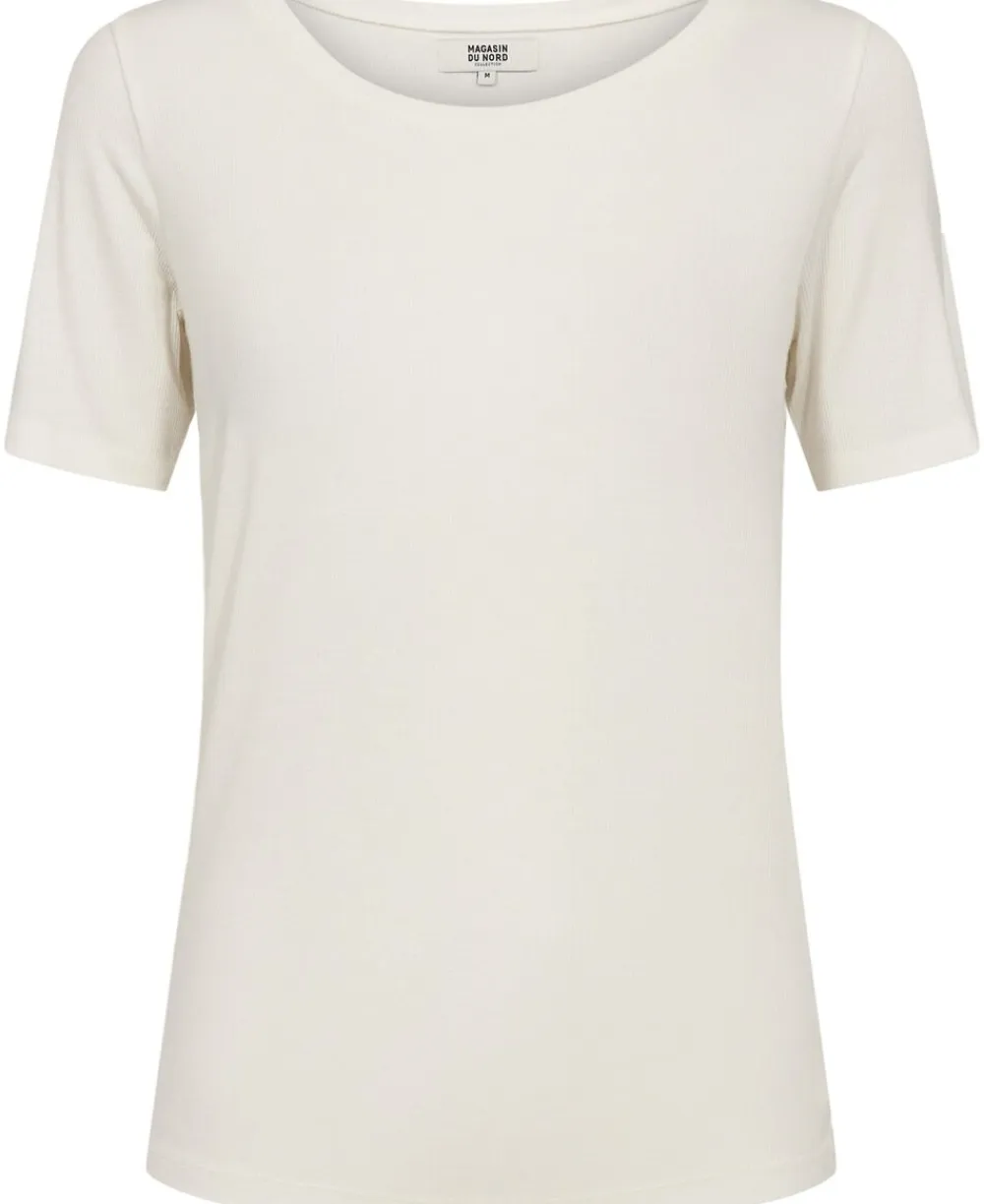 T-shirt fra Magasin du Nord Collection i den fineste kvalitet af 95% ECOVERO viskose. T-shirten er enkel i modellen med en fin ribbet struktur, korte ærmer, rib langs den runde halsudskæring samt en tætsiddende pasform. En skøn T-shirt, der er et musthave i basisgarderoben. ECOVERO is a trademark of LENZING AG. ECOVERO viskose er lavet af træer fra skove, der har fokus på ansvarlig skovbrug og ansvarlighed for mennesker og miljø. Selve processen, hvor træet omdannes til viskose, foretages i et lukket kredsløb og med en teknologi, der både nedbringer brugen af vand og gør det muligt at genanvende de kemiske stoffer, der indgår i processen.