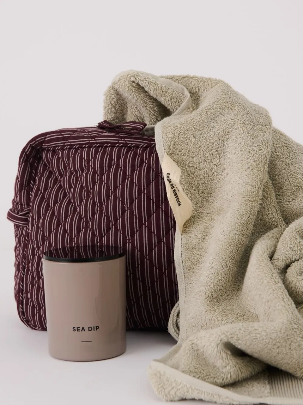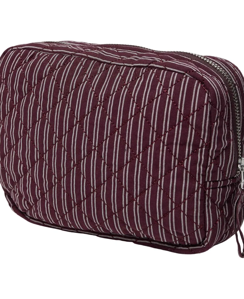 Toilettaske fra Magasin du Nord Collection i den blødeste kvalitet af 80% økologisk bomuld med GOTS-certificering. Toilettasken består af ét stort rum med lynlåslukning samt mindre inderlommer. Derudover har toilettasken fine vatterede syningsdetaljer og et stribet print. En skøn toilettaske i den lækreste kvalitet.