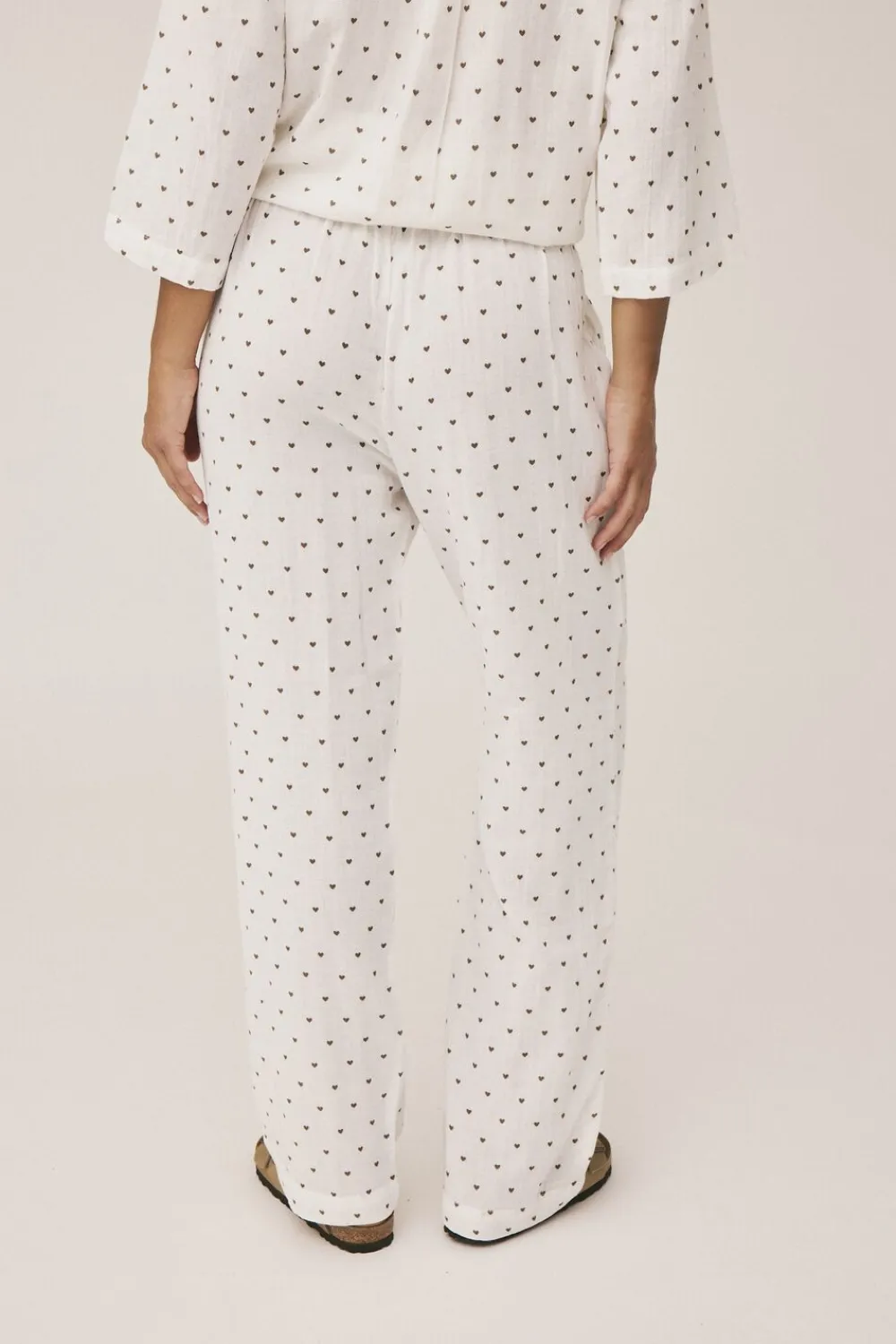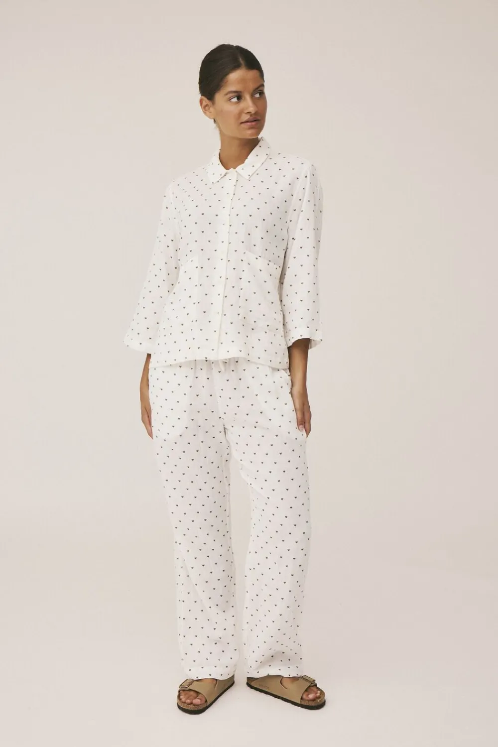Pyjamasbukser fra Magasin du Nord Collection i den blødeste kvalitet af 100% økologisk, GOTS-certificeret bomuld. Bukserne er enkle i modellen med sidelommer, elastik og bindebånd i taljen samt en løs pasform. Et par casual pyjamasbukser i den lækreste kvalitet. Økologisk bomuld kommer fra landbrug, hvor man arbejder med naturen på en måde så både økosystemer og biodiversitet opretholdes. Det betyder, at der ikke benyttes giftige kemikalier, at vandforbruget begrænses og at der i højere grad anvendes regnvand i produktionen. Når du vælger økologisk bomuld, er du derfor med til at værne om jordens ve og vel.