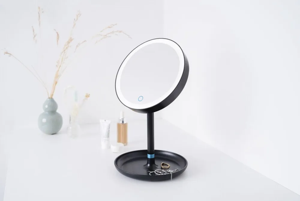 Makeup spejl BS 45 i flot sort Limited Edition udgave. Kosmetikspejlet har en ekstra stor spejlflade på 17,5 cm med LED lys rundt om. Lyset kan justeres med touch knappen.