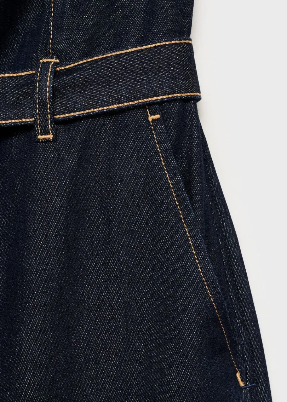 Denim-stil bomuldsstof, kontrastsømme, lynlås i siden, langt Design, lige Design, stropløs halsudskæring, ærmeløs, bæltestropper, justerbart bælte, to sidelommer, to lommer bagpå,. INGEN OVERSÆTTELSE 80,2. INGEN OVERSÆTTELSE 111,7. INGEN OVERSÆTTELSE 18,5