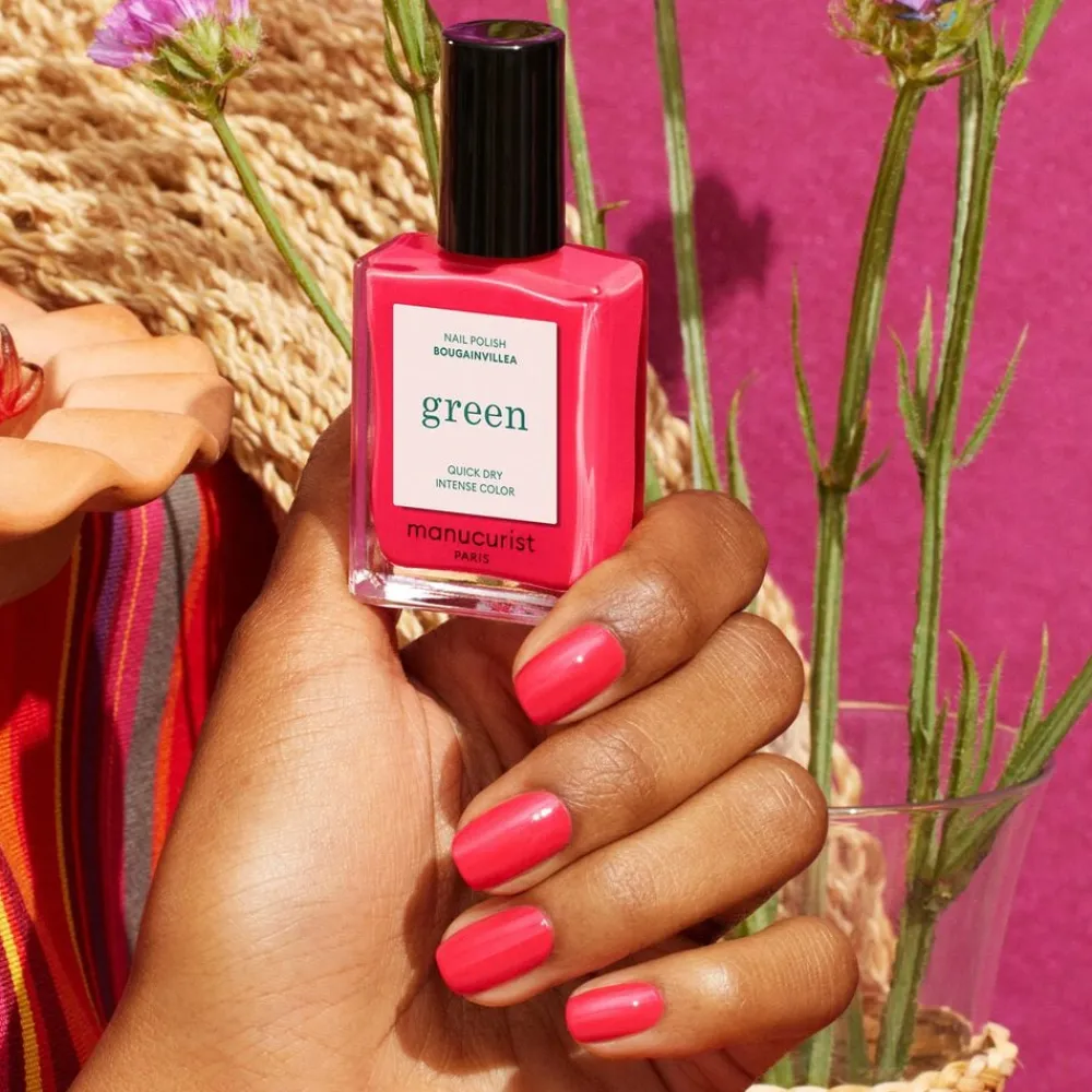 Hej, vi er Manucurist – et grønt neglelak-brand! Hæv din skønhedsrutine med den allerbedste neglelak fra Paris. Vores neglelakker har ingen dårlige ingredienser og er altid crueltyfree og veganske. Vi elsker øko-venlig skønhed – og mener, at ansvarlighed skal gå hånd i hånd med moden. Og vi elsker mode, men ikke den hurtige. Manucurist Green er designet til at have den mindst muligt negative indvirkning på vores planet og den allerbedste på neglene! Green er en farverig og chic serie af plejende og miljøvenlige neglelakker, baseret på en plejende formel med op til 84% naturligt indhold. De resterende procenter sikrer, at vores produkter bevarer deres intense farve, glans og holdbarhed. De plantebaserede neglelakkerne er udeladt en lang række skadelige kemikalier, og indeholder i stedet økologisk dyrkede ingredienser: kartoffel, hvede, maniok, majs, kokos og bambusekstrakt. De plantebaserede ingredienser er ikke fremstillet af petroleum, men fra vedvarende ressourcer, der begrænser indvirkningen på miljøet. Voila!
