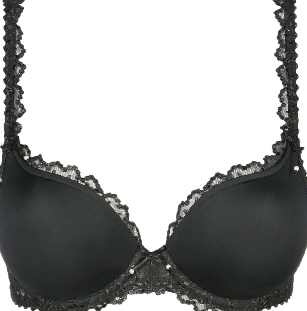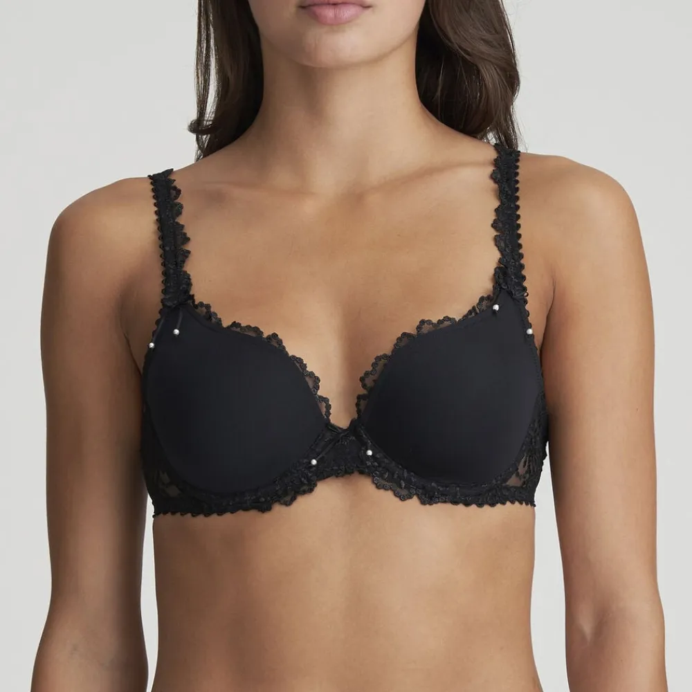 En smuk variant af Marie Jos fantastiske hjerteformet bh. Bh´en sidder smukt til og smyger sig så smukt op af barmen. Et delikat broderi følger skålen og giver et elegant look og et perfekt fit. De elegante stropper med det smukke broderi, kan enten bæres klassisk eller rundt om halsen som halterneck. Jane er en af Marie Jos mest ikoniske serier – som altid kommer i et hav af sæson farver. Men glem aldrig basis lingerie skuffen. Som du her kan fylde op med Jane i elegant og forførende sort. Der findes mange forskellige trusser til serien Jane, helt sikkert også en til dig.