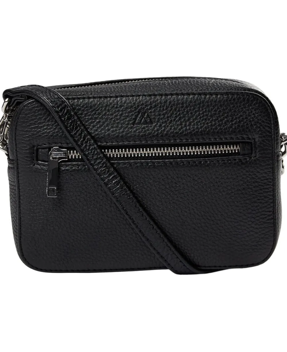 Elea Crossbody Bag fra Markberg er en kommerciel og nem lille crossbody taske, der er produceret i 100% kalveskind. Smart taske med en lynlåslomme på fronten. Tasken har et rum og en lomme indvendig. Lukkes med lynlås. Taskens læderstrop er aftagelig og justerbar. Taskens for er i 100% bomuld. Mål: 19 cm x 13 cm x 6 cm