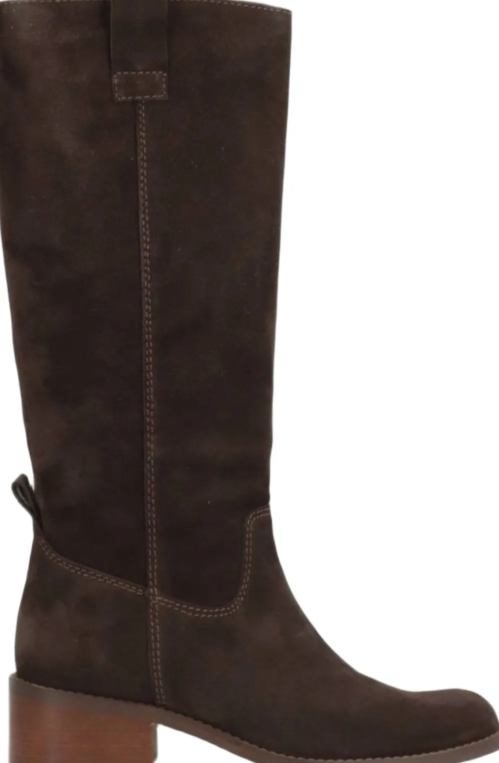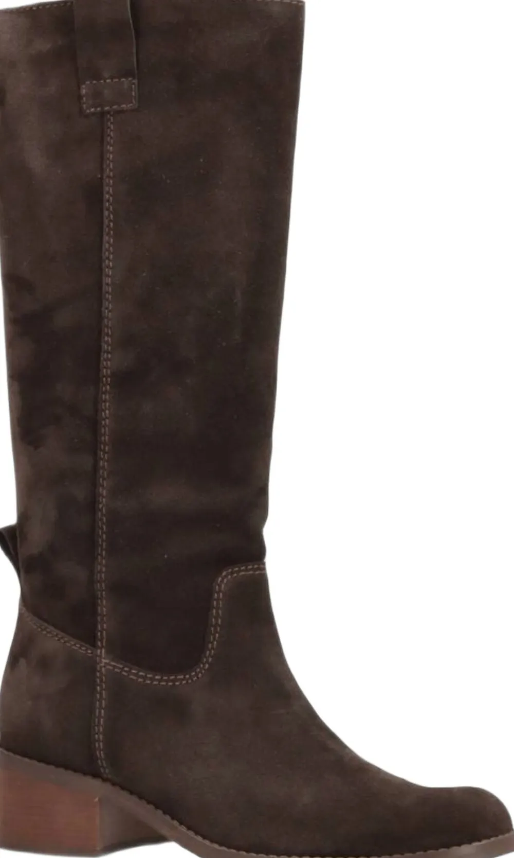 MARTINA er den perfekte langskaftede støvle til dig, der elsker enkelhed med karakter. Det bløde, mørkebrune ruskind kombineret med det klassiske western-inspirerede skaft giver et sofistikeret og naturligt look, som passer perfekt til både hverdagsjeans og strikkjoler. Den stabile hæl og let rundede snude gør støvlen komfortabel hele dagen – uden at gå på kompromis med stilen.