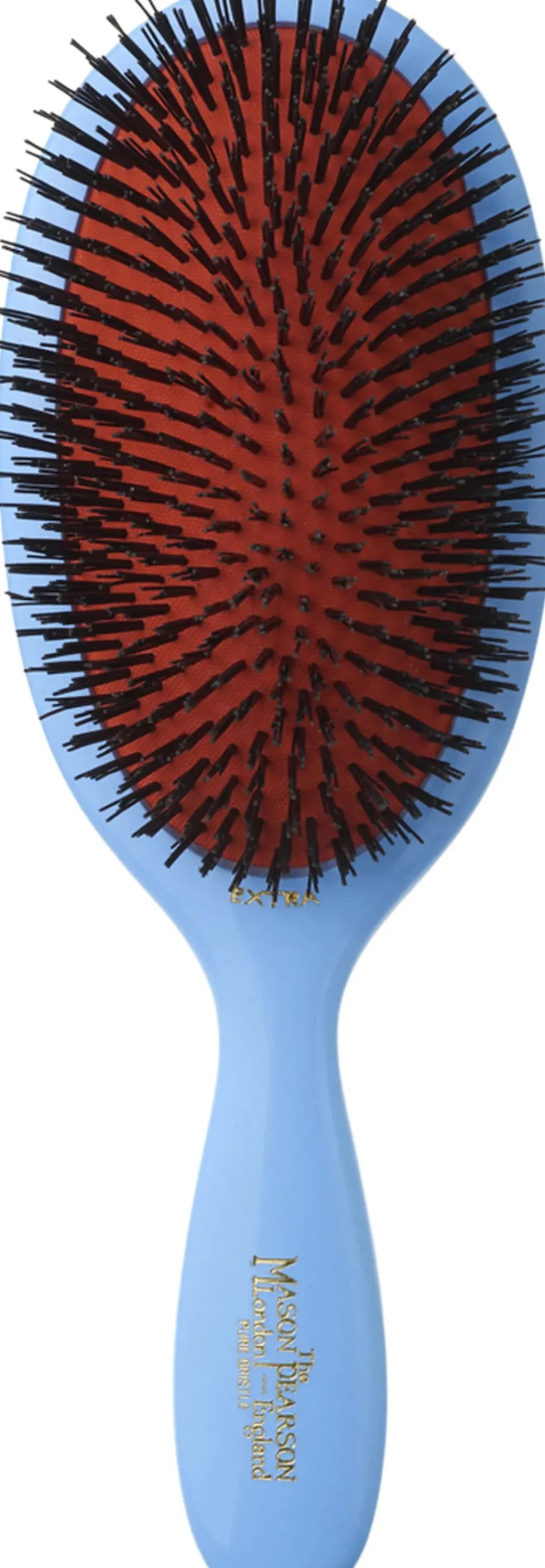 Mason Pearson B2 er den mellemste størrelsen i sortimentet og er lavet udelukkende af rene vildsvinehår. Denne børste anbefales til fint hår. B2 er meget velegnet til mellemlangt eller helt langt hår. En Mason Pearson børste masserer og stimulerer hovedbunden, hvorved hårbundens naturlige olier bliver frigivet. Ved gennembørstning bliver olien fordelt ud i længden af håret, så håret får en naturlig glans, samt fylde i bunden. Mason Pearson anbefaler 100 strøg om dagen – en investering i et godt hår hele livet! Inklusiv Mason Pearson rensebørste.