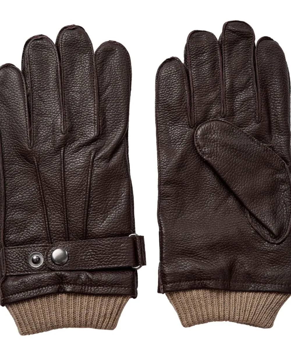 Handsker fra Magasin du Nord Collection i den blødeste kvalitet af LWG-certificeret læder. Handskerne er enkle i modellen med diskrete syninger, et blødt for, en ribstrikket cuff samt en justerbar strop over håndleddet for en behagelig pasform. Et par klassiske handsker i den lækreste kvalitet.