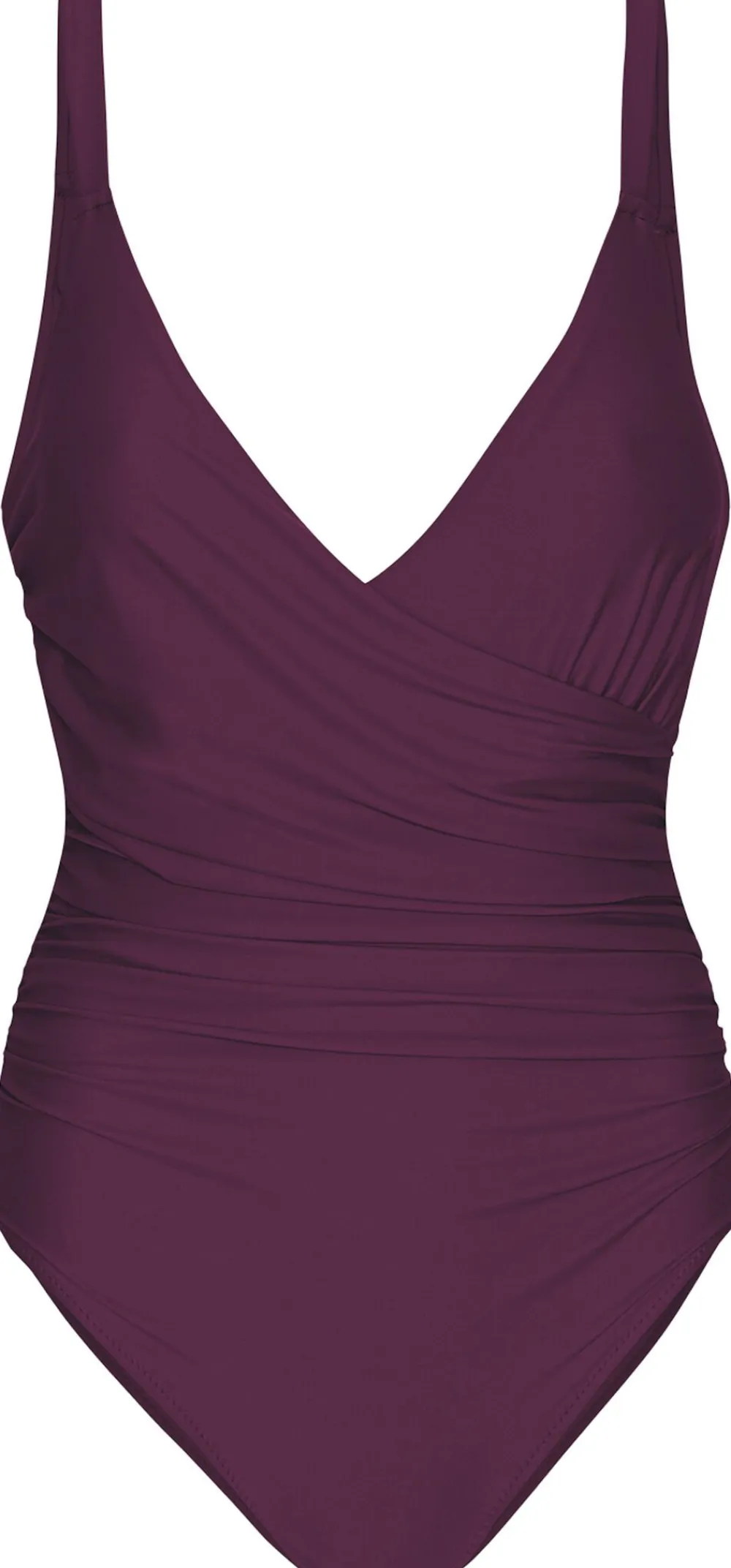 Medewi draperet badedragt er designet med en smuk draperet slå-om skæring. Dette gør den flatterende på alle kropstyper og kan også fungere perfekt som en body sammen med et par bukser eller en nederdel. Derudover har den brede justerbare stropper, som sikrer dig et perfekt fit. Medewi er syet med 2-lags stof af høj kvalitet, som føles fantastisk, er åndbart mod huden og samtidig støtter alle de rigtige steder. Produktet er skabt af ECONYL® regenereret nylon blandet med elastan.