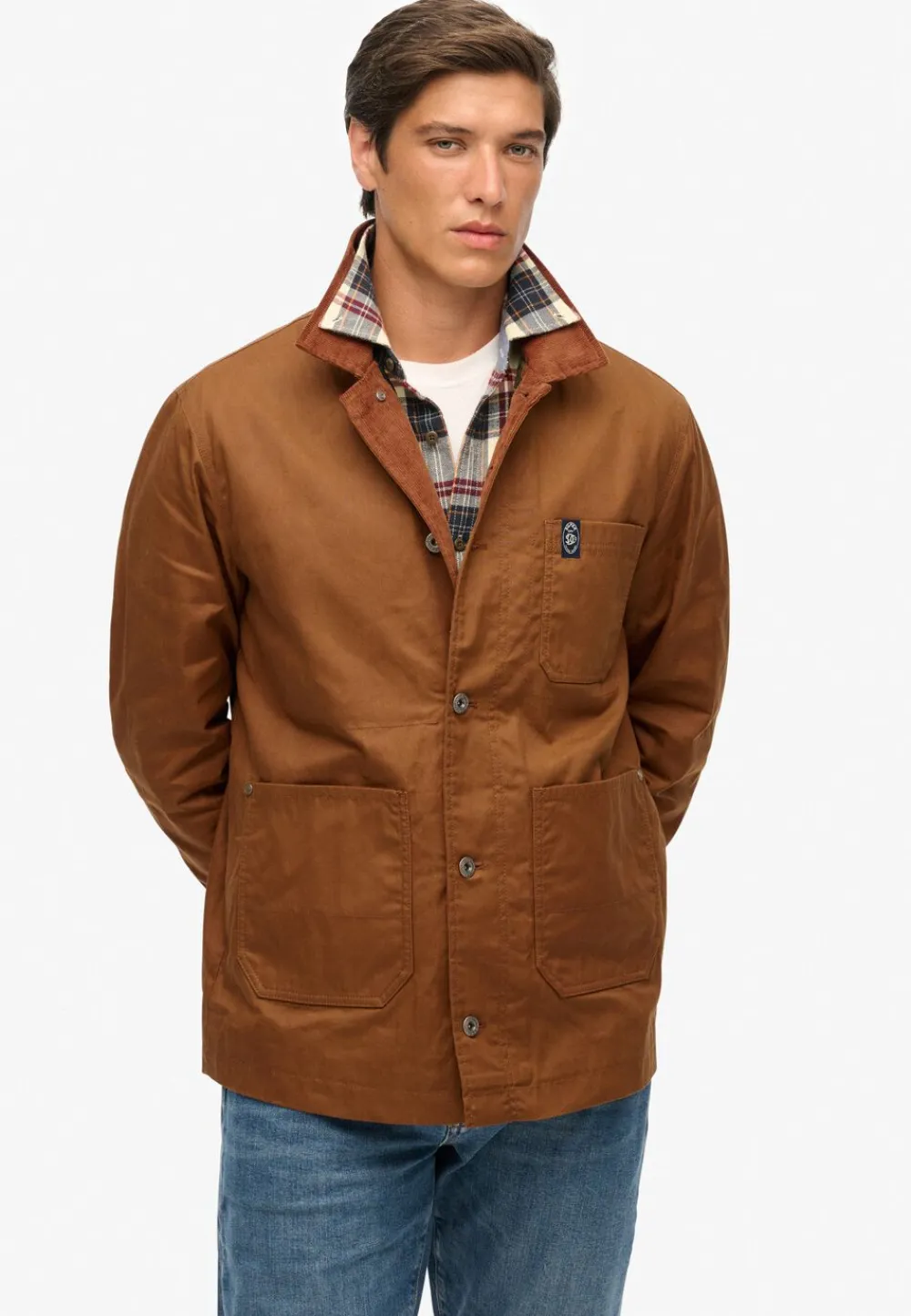 Afslappet pasform – den klassiske Superdry-pasform. Løs ikke for slankt, ikke for løst Løs, bare rigtigt. Gå efter din normale størrelse. Single krave med knaplukning. Knapjusterbare manchetter med fire udvendige lommer og to indvendige lommer. Signaturlogo på brystlommen. Merchant Store – Waxed Worker Jacket er en smuk blanding af upåklagelig kvalitet og vintage Fashion. Den er designet med en autentisk silhuet og en let følelse og er den perfekte mulighed for lagdeling gennem årstiderne for ubesværet at vise din signaturstil frem