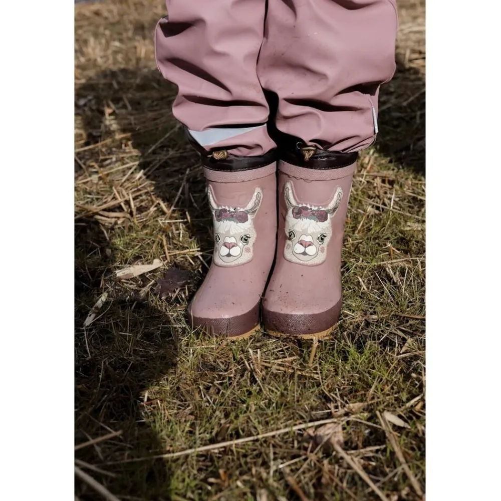 Mikk-line vintergummistøvler med lun foring, samt en sød og feminin 3D printdetalje af et dyr på støvleskaftet. De er lavet af naturgummi, og de er fri for ftalater. Gummistøvlerne er vandtætte, varme og praktiske til børn, der elsker at hoppe i vandpytter eller lege i vådt græs, sand eller sne. Disse gummistøvler fås i størrelse 19-38. GENNEMTÆNKT DESIGN – 3D printmotiv af et dyr på fronten af støvleskaftet. – Udstyret med snørebånd til at justere toppen af gummistøvlerne og minimere risikoen for at få vand eller sne ind i gummistøvlerne. – Varm og isolerende foring lavet af 30% uld, som også kan absorbere meget fugt uden at støvlerne føles fugtige indvendig. – Bløde og aftagelige indlægssåler, der giver dig mulighed for at finde den rigtige skostørrelse til dit barn. Hvis der kommer vand ind i gummistøvlerne, kan du fjerne indlægssålerne og hænge dem til tørre. – 3M-reflekser gør barnet mere synligt i mørket selv på lang afstand. – Det er sikkert at gå på glatte overflader, da gummistøvlerne har skridsikre ydersåler med riller til at lede vandet væk. – Naturgummi. – Uden ftalater, tungmetaller, klorparaffiner og PAH’er. STØRRELSESGUIDE (Længde på indlægssål målt i centimeter) 19 12,5 20 13,1 21 13,8 22 14,5 23 15,1 24 15,8 25 16,5 26 17,1 27 17,8 28 18,4 29 19,1 30 19,8 31 20,4 32 21,1 33 21,7 34 22,4 35 23,1 36 23,8 37 24,5 38 25,1 PLEJEVEJLEDNING – Brug en vandbaseret imprægneringsspray (helst uden PFAS) til regelmæssigt at imprægnere gummistøvlerne. Dette hjælper med at fugte gummistøvlerne og forhindre dem i at revne. Undgå at sprøjte på ydersålen, da den kan blive glat. – Rengør gummistøvlerne ofte. Brug en blød klud med vand og en skånsom sæbe. – Lad gummistøvlerne tørre ved stuetemperatur. Hvis der er vand indeni støvlerne/gummistøvlerne, fyld dem med avispapir der kan suge vandet. – Undgå at udsætte gummistøvlerne for sollys og ekstremt høje eller lave temperaturer i længere perioder. – Opbevar gummistøvlerne oprejst et tørt, mørkt og køligt sted.
