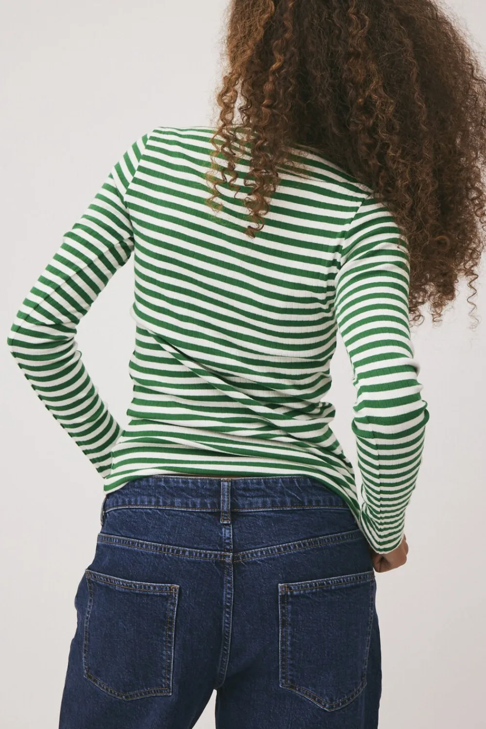 Bluse fra Magasin du Nord Collection i den blødeste kvalitet af 100% økologisk bomuld med GOTS-certificering. Blusen er enkel i modellen med lange ærmer, en smal ribkant langs den runde halsudskæring samt en lækker ribstruktur, der giver blusen en tætsiddende pasform. En skøn bluse i den lækreste kvalitet.