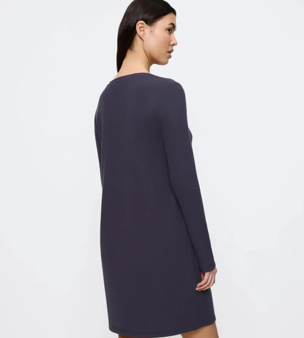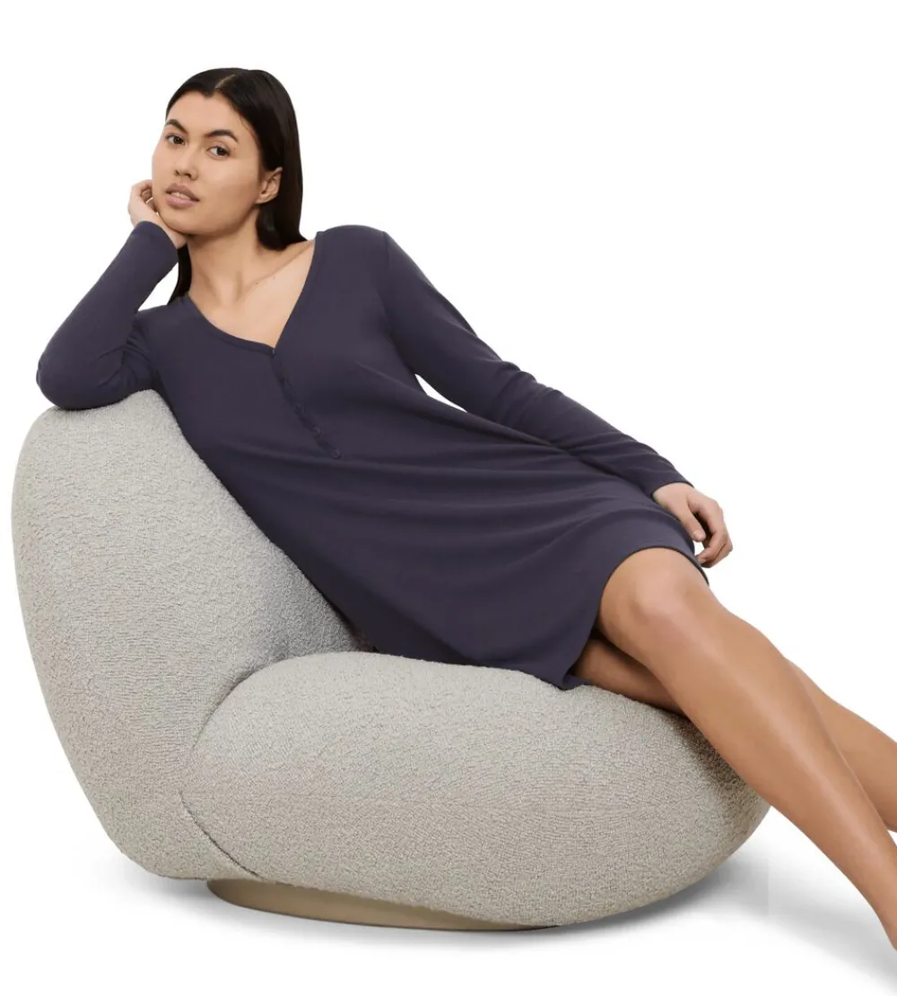 Denne langærmede natkjole, der går til over knæene, kombinerer komfort og stil. Den har en alsidig V-udskæring og justerbar knaplukning. Den er fremstillet af en blød, børstet stofblanding af 61 % genbrugspolyester og 33 % certificeret Lenzing-viskose, som sikrer varme og komfort.
