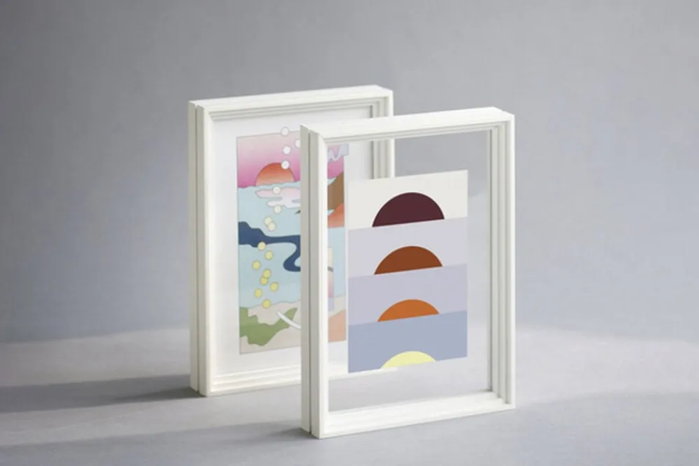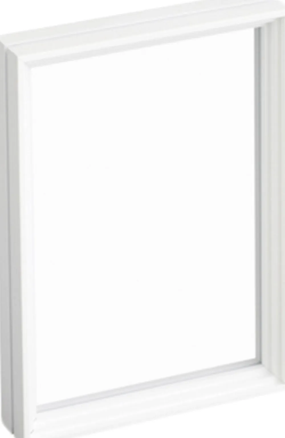 A frame, made simple. Standing Frame comprises two pieces of acrylic glass, four sides, and a rubber band. Suspend photos, flowers, or prints between the transparent glass, or fill out the entire frame. Its up to you. Available in black and white powder-coated aluminium, and untreated oak.