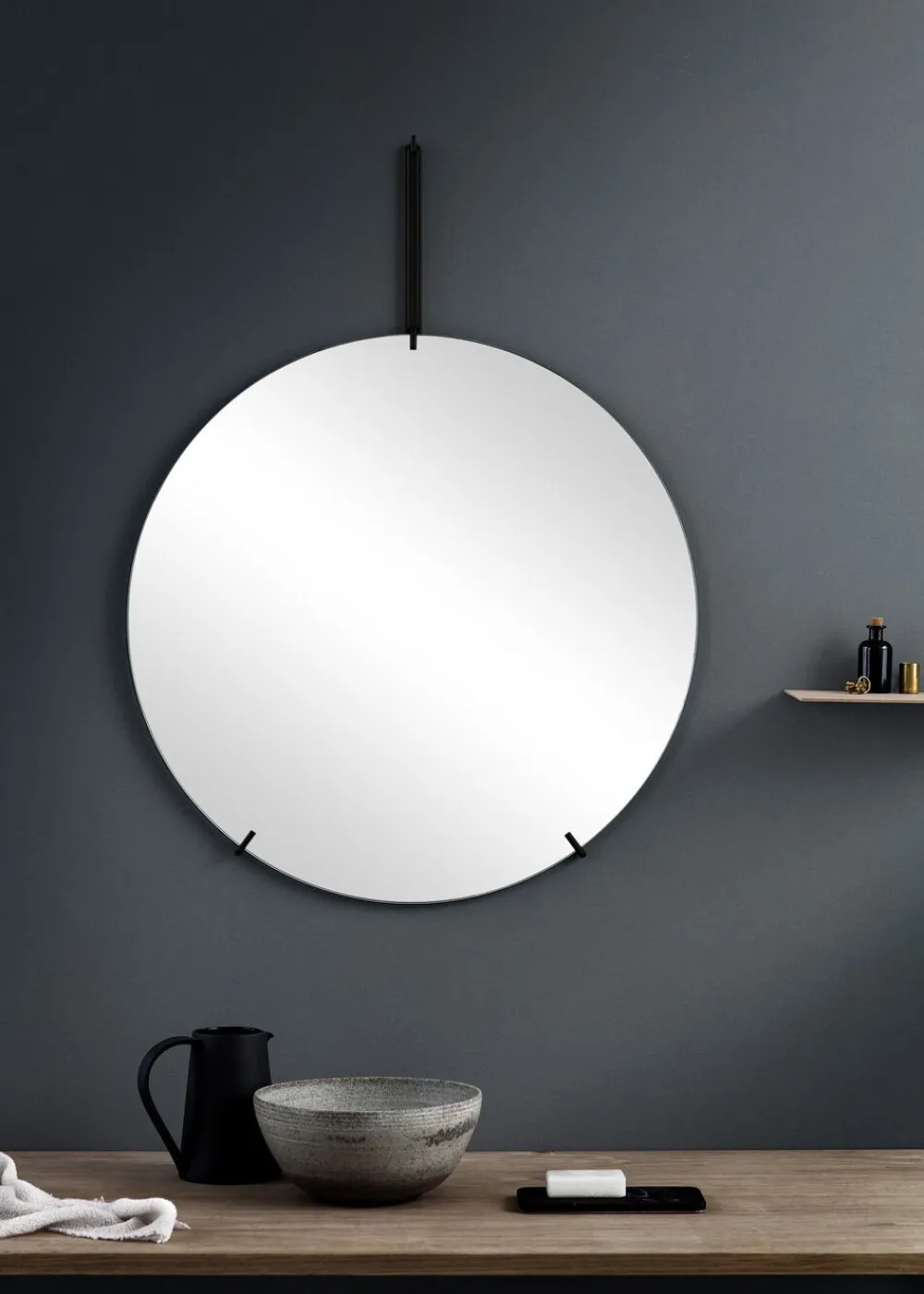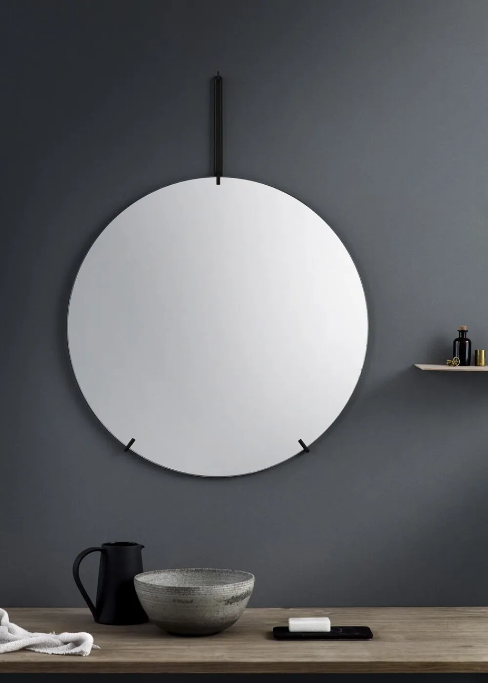 WALL MIRROR er et rammeløst vægspejl holdt af en let wireform. Præcis som vores STANDING MIRROR, har vi fokuseret på de essentielle elementer. Ved at gøre dette er spejlet holdt simpelt og giver plads til, at hovedelementet – glasset – kan tale for sig selv.