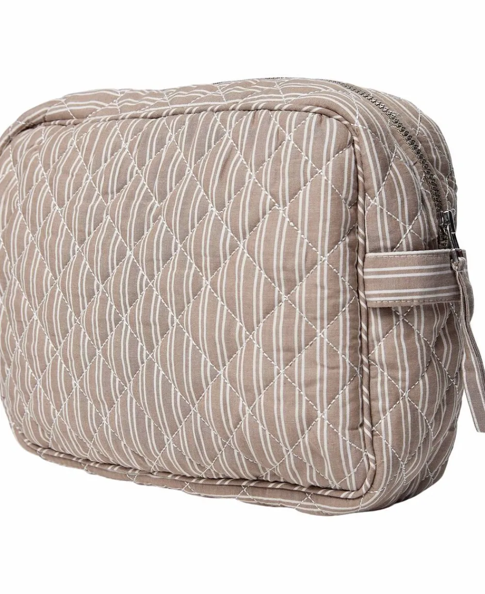 Toilettaske fra Magasin du Nord Collection i den blødeste kvalitet af 100% økologisk bomuld med GOTS-certificering. Toilettasken består af ét stort rum med lynlåslukning samt mindre inderlommer. Derudover har toilettasken et lille håndtag samt fine vatterede syningsdetaljer. En skøn toilettaske i den lækreste kvalitet.