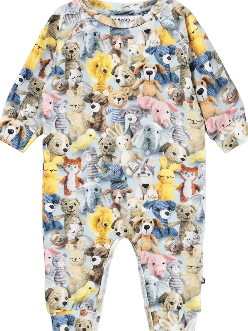 Denne heldragt fra Molo er lavet i økologisk bomuldjersey. Dragten har lange ærmer og ben, trykknapper på den ene skulder og mellem benene, samt ribkanter i ærmerne og benene.