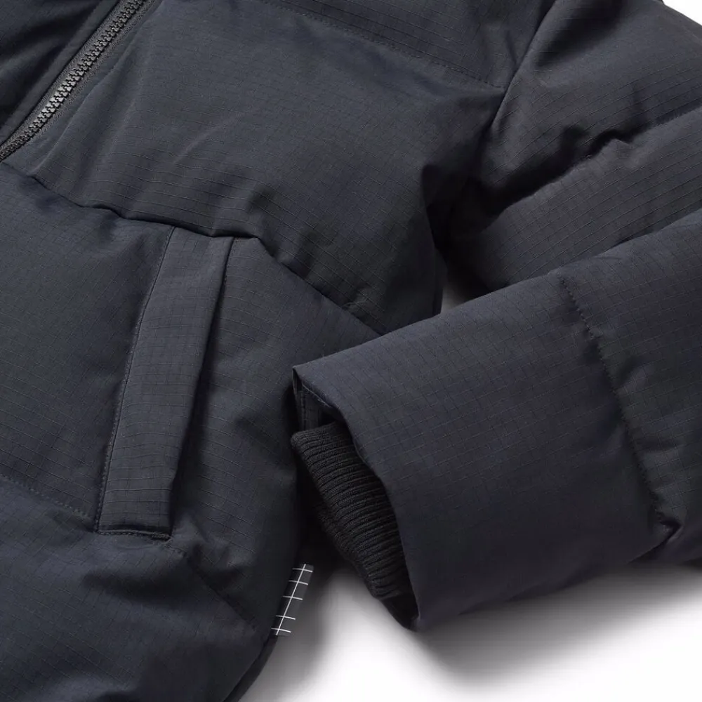 Denne sorte jakke fra Molo er lavet i genanvendt nylon og har en praktisk lynlåslukning, høj krave og aftagelig hætte. Jakken har en længde til over knæet og er designet med frontlommer, en indvendig lomme samt ribkant ved håndleddene. Høje slidser med trykknapper i begge sider sikrer stor bevægelsesfrihed og gør jakken praktisk når du skal cykle. Bagpå er der en stor refleks.