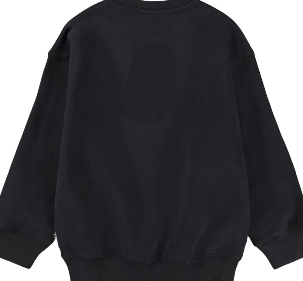 Denne sorte sweatshirt fra Molo er fremstillet i blødt økologisk bomuld og dekoreret med et stort print af et fredshåndtegn. Designet har en oversize pasform og ribkanter ved hals, ærmer og bund.