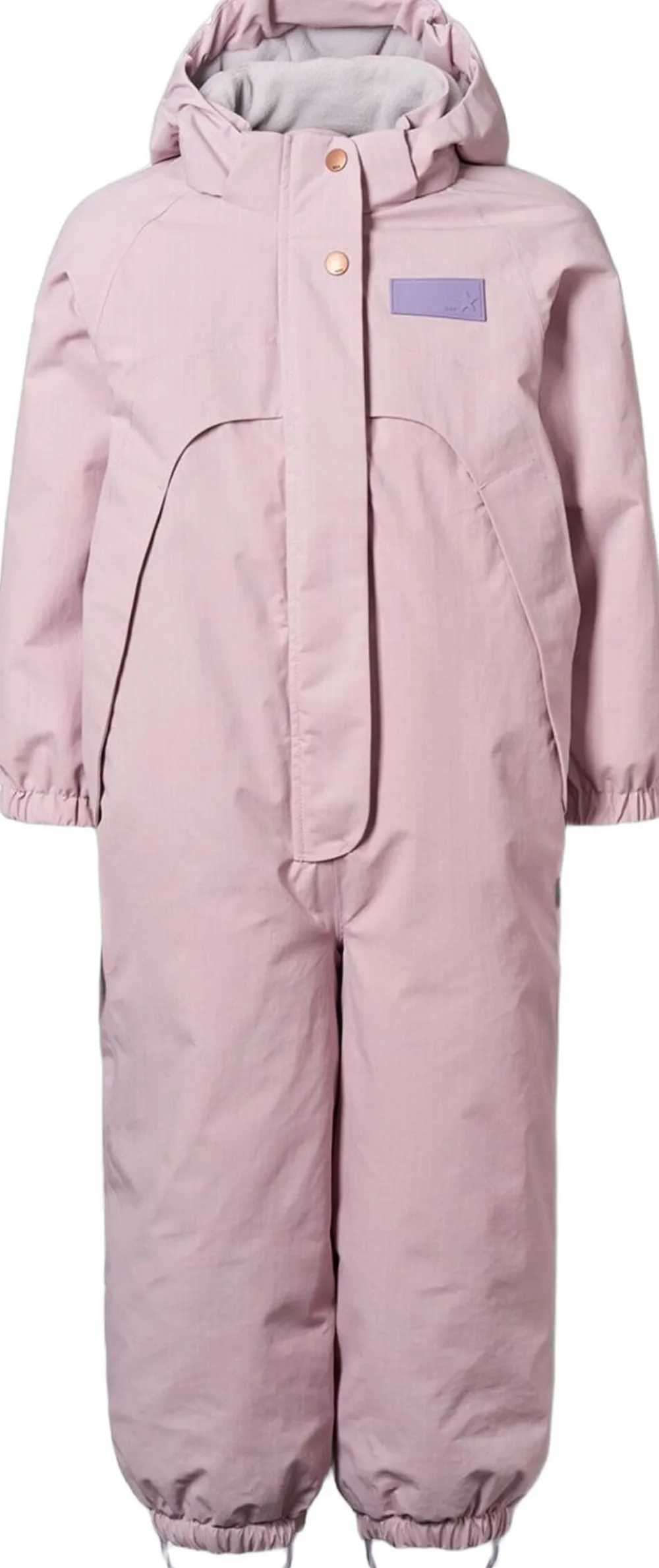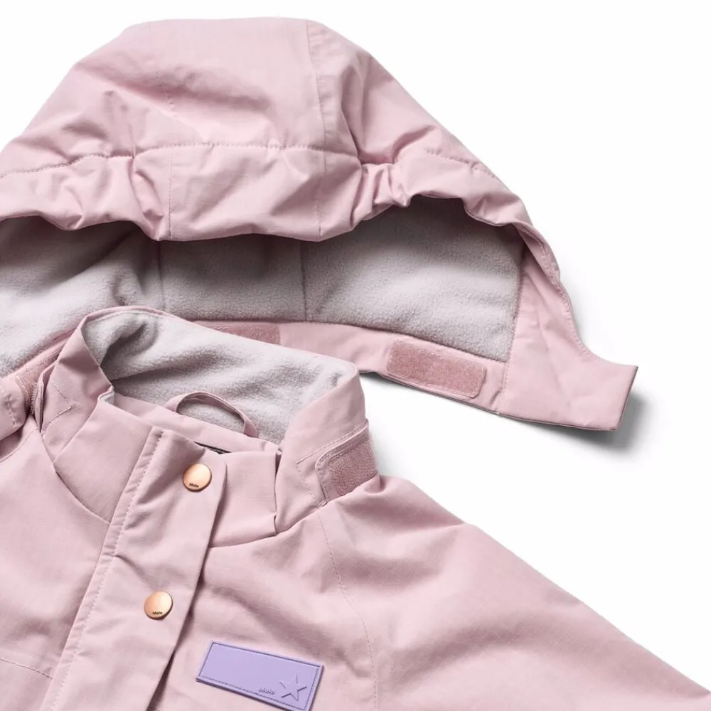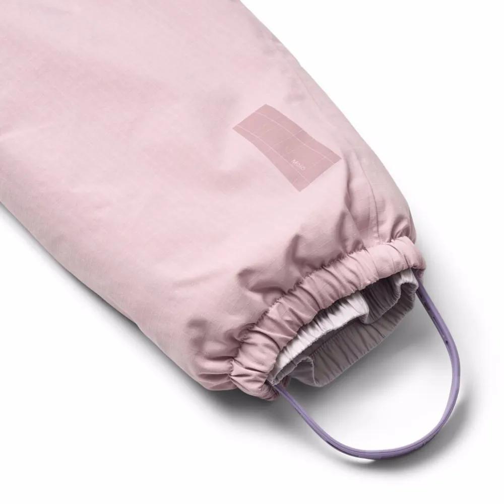 Denne vandafvisende flyverdragt fra Molo er lavet i genanvendt nylon. Den har en aftagelig, foret hætte og en lang lynlås på fronten med overfald, der gør den nem at tage af og på. Elastikken i lænden samt ved ærmer og benåbninger holder sne, regn og vind ude, samtidig med at luffer og støvler bliver på plads. Dragten har desuden en indvendig justerbar elastik i taljen for en tæt pasform omkring kroppen.