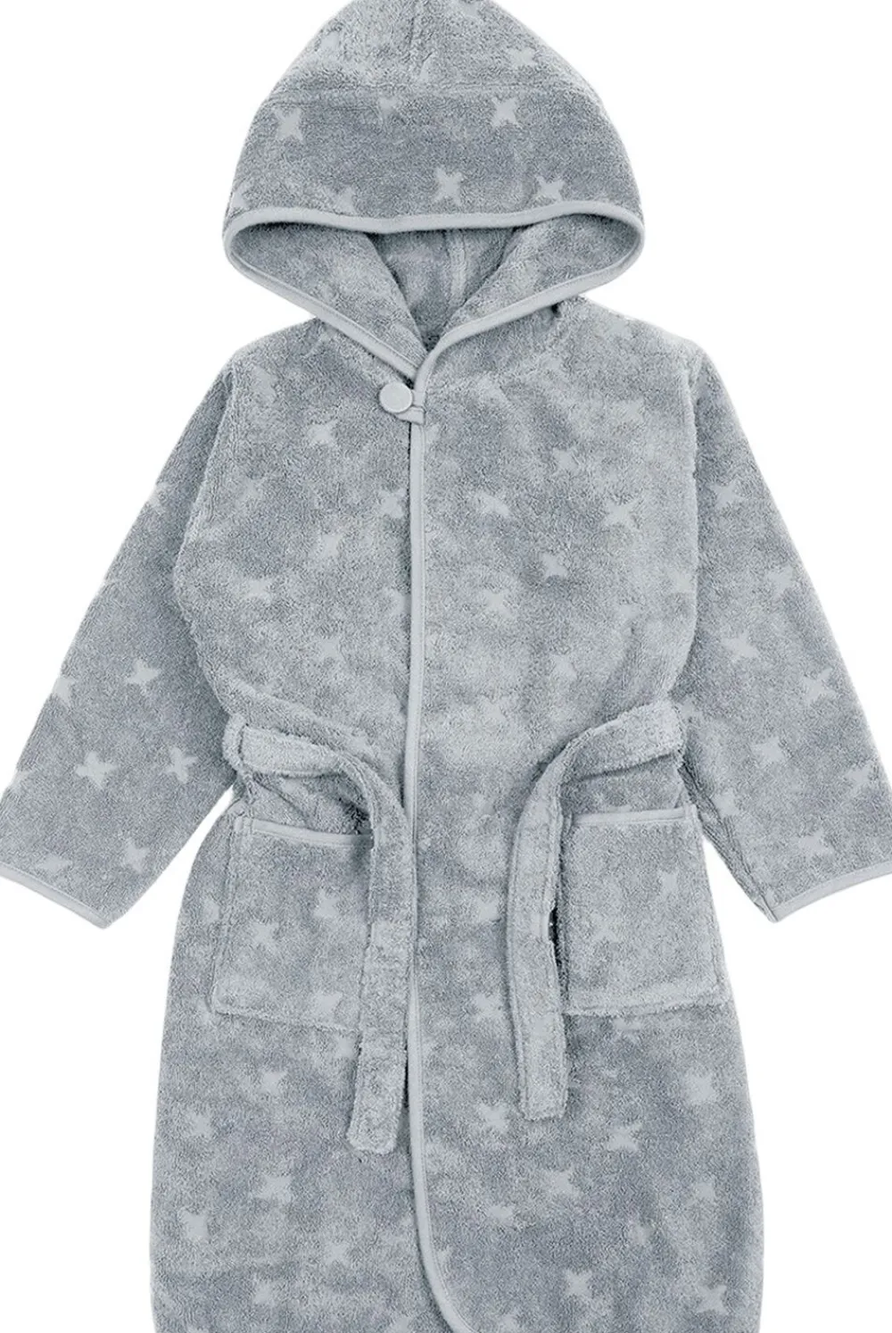 Super lækker badekåbe i lækker blød bomulds frotte. Praktisk bindebånd rundt om livet samt lommer fortil. Bindebåndet er påsyet bagpå så det ikke falder af og bliver væk. Badekåben er udstyret med en dejlig stor hætte, og elastik i taljen. (). Produktet er GOTS organic- certificeret, hvilket betyder at bomulden er certificeret økologisk, og at der i alle andre processer som farvning, strikning og syning er taget de strengeste hensyn til miljøet. GOTS er internationalt anerkendt som den førende standard for forarbejdning af tekstiler af økologisk bomuld. Derudover tages der også hensyn til arbejdsforholdene, hos dem der producerer tøjet. Økologisk bomuld 100%