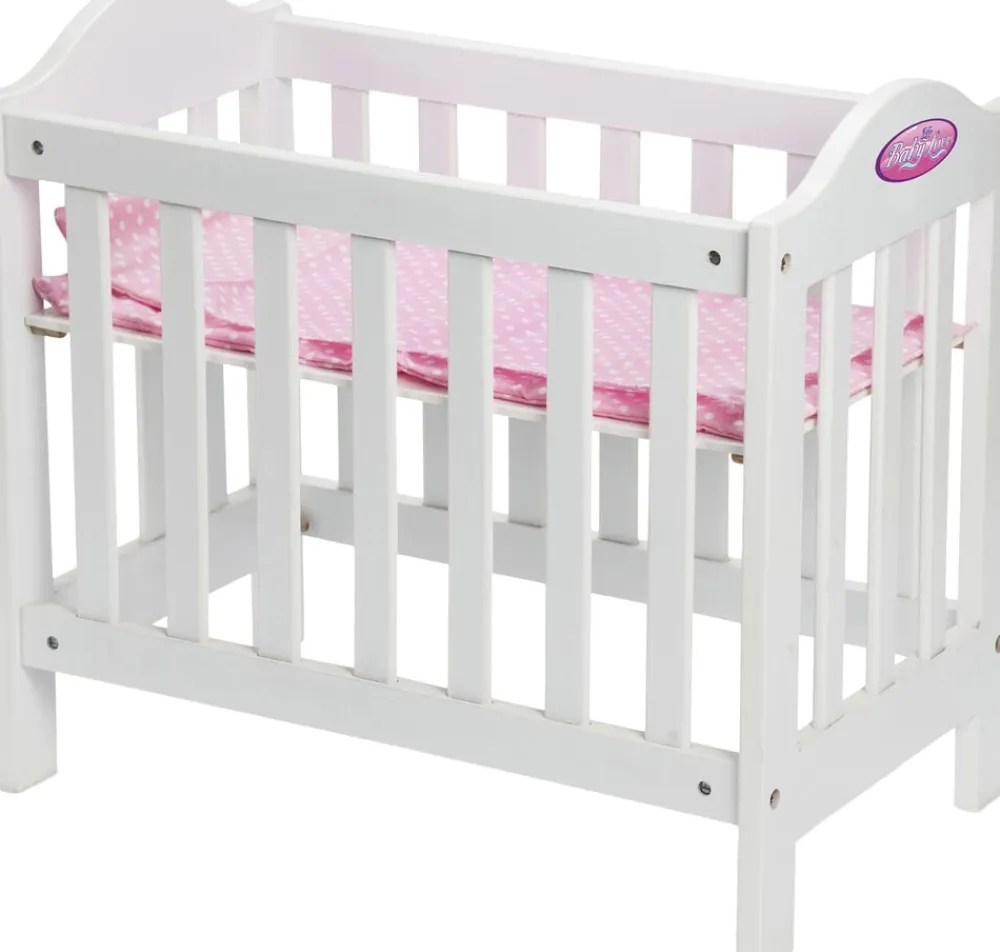 Tremmeseng i træ Med madras. dyne og pude 49x44x30 cm Passer til 30-46 cm dukker Med højdejusterbar bund Uden dukke