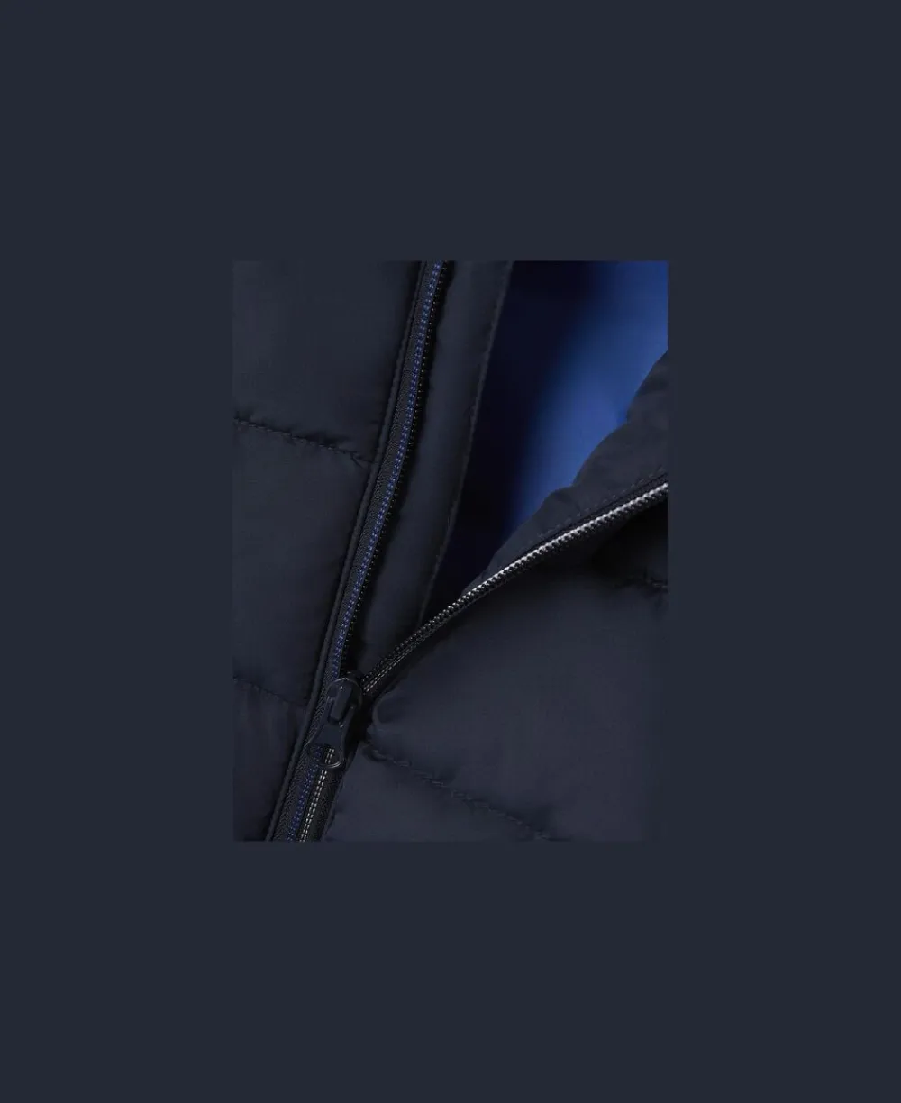 – Detaljer : Badge, Lynlåsbeskyttelse for at forhindre, at lynlåsen får fat i huden, Elastisk kant