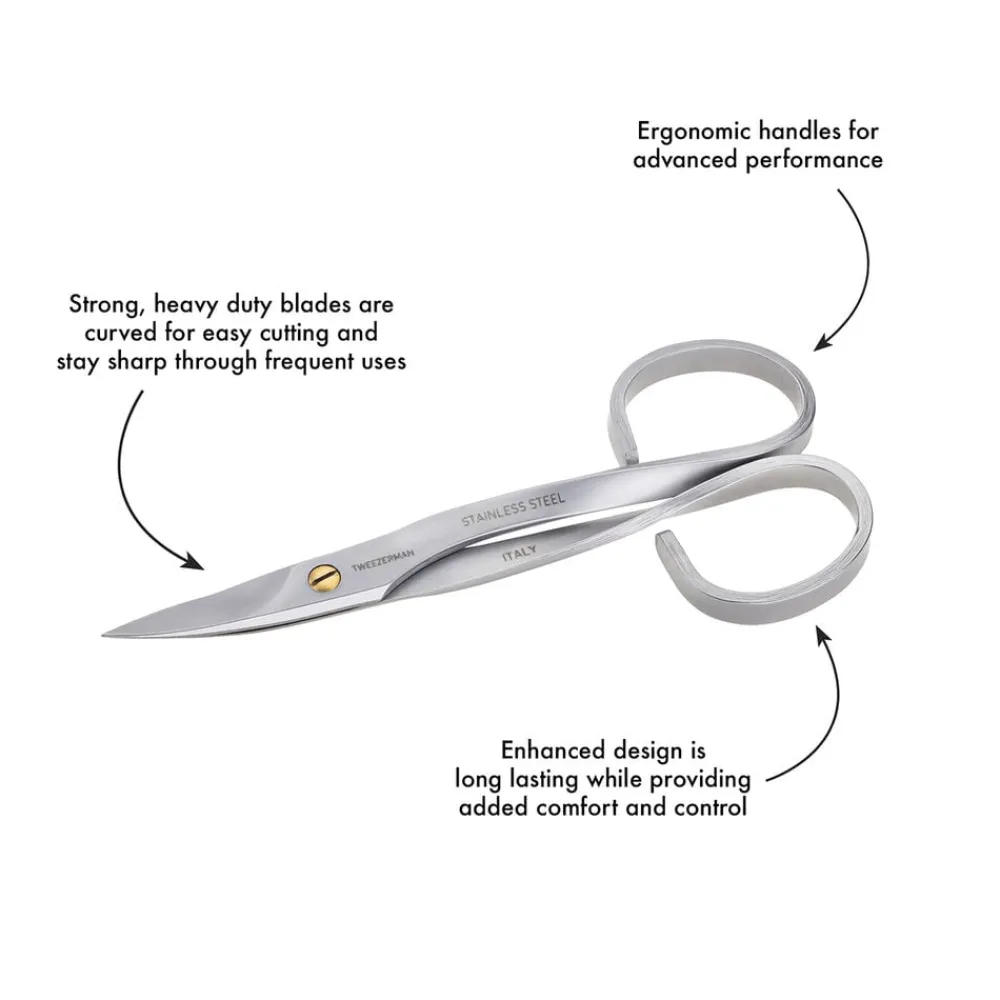 Et elegant design med med ekstra skarpe, tynde spidser og et buet skær, som sikrer en præcis klipning af neglerødder og flossede neglebånd. Rustfrit stål.