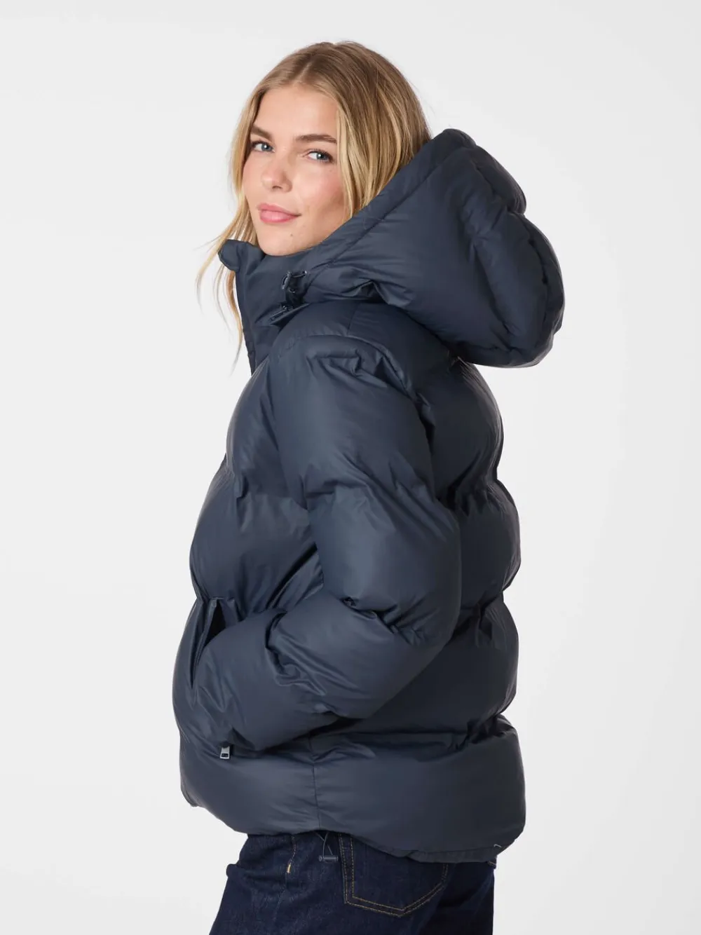 Cool vatteret jakke som er regnafvisende. Kvaliteten er blød og mat og giver et fedt look. Jakken er kort og har aftagelig hætte og justerbar vidde forneden. Modellen er 176cm og bærer en størrelse 36.