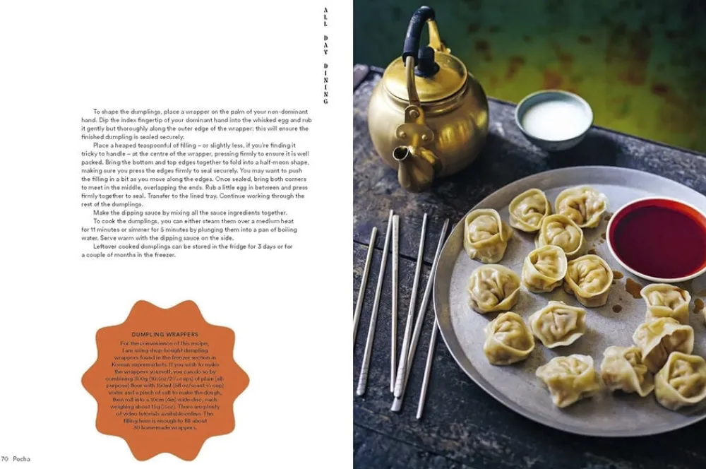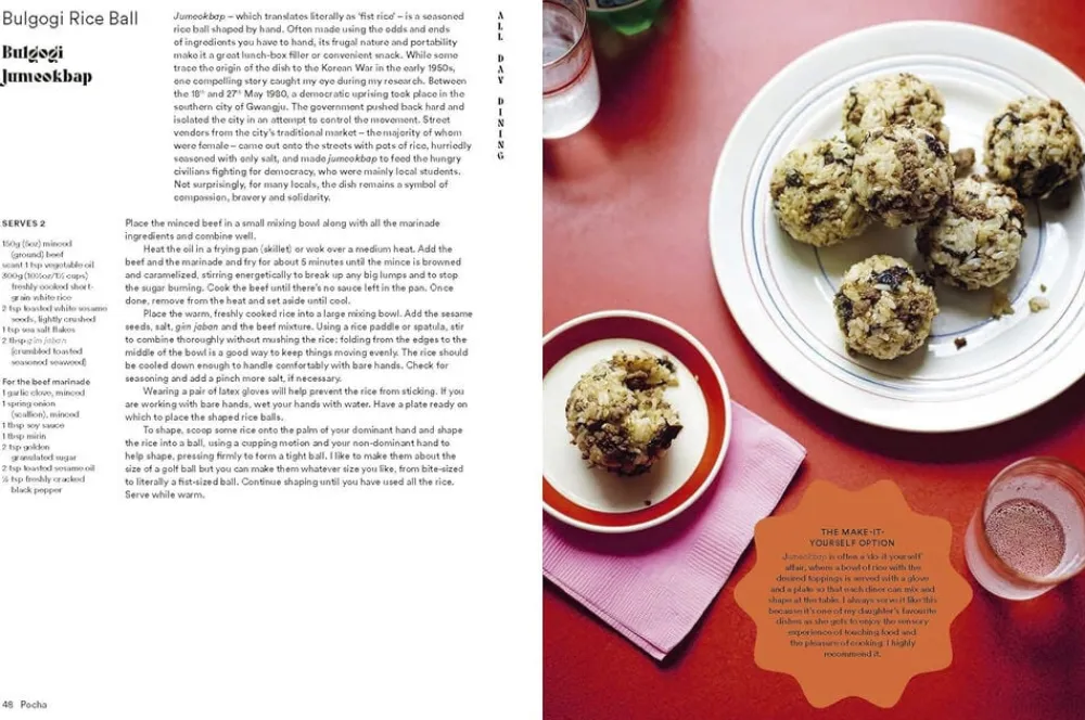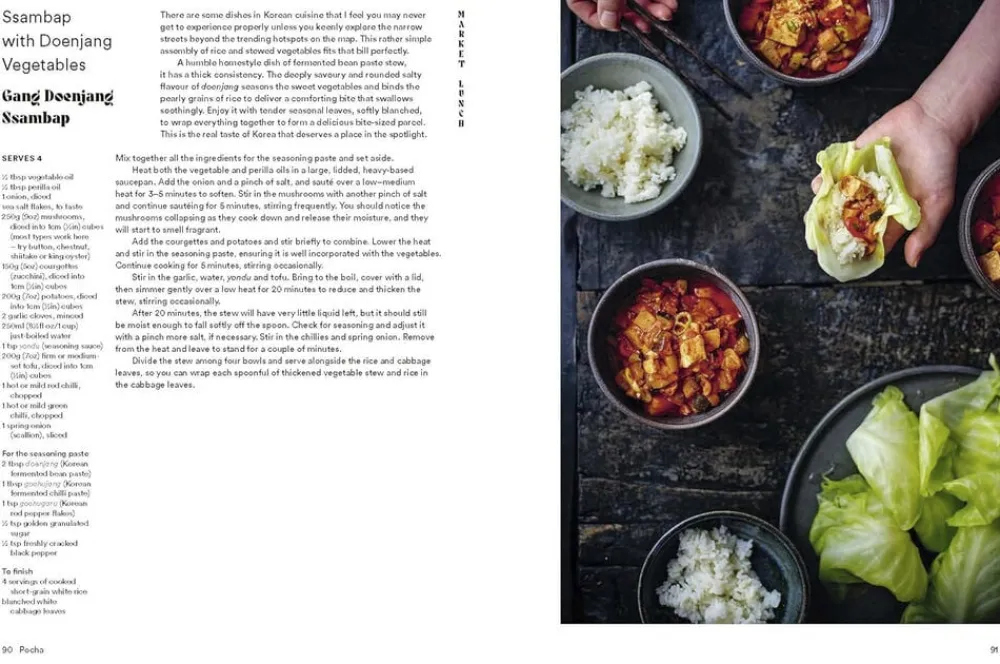Pocha er fyldt med levende lokationsfotografering fra Seoul, der væver en fortælling om Su’s rørende tilbagevenden til sit hjemland, og er en elektrisk og øm kogebog.