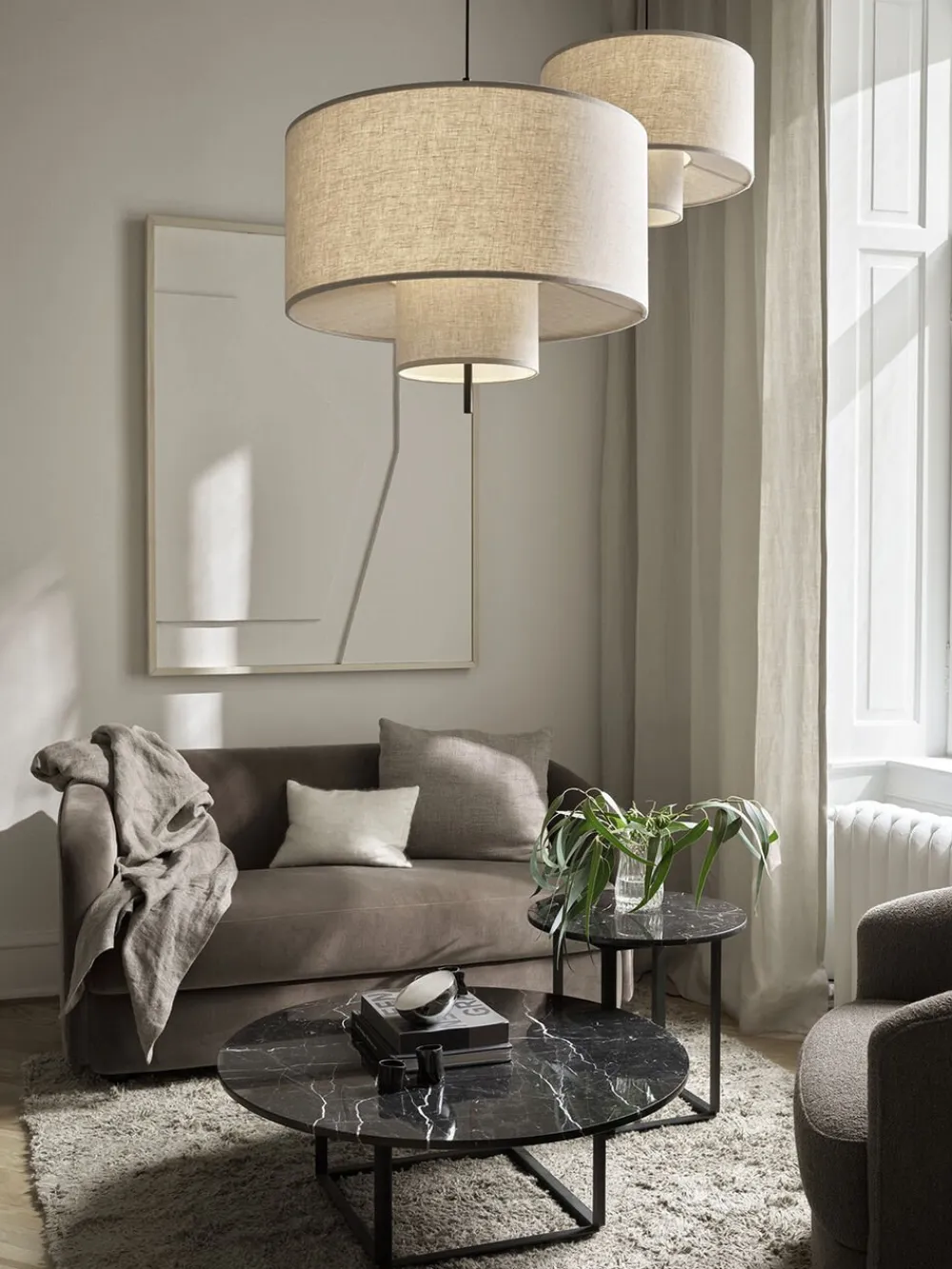 Margin-belysningsfamilien er designer John Asburys moderne fortolkning af et klassisk armatur. Ved at udforske en trindelt typologi for belysning spreder Margins krydsende nuancer blidt lyset og sætter øjeblikkeligt tonen med varme og taktilitet. Stoffets blødhed dæmpes af en ren og grafisk silhuet, der giver et vist nærvær og volumen til et rum. Det er sansen for proportioner, sammen med detaljer som det lineære element gennem lampen, der skærper æstetikken og lader Margins særlige karakter udfolde sig.