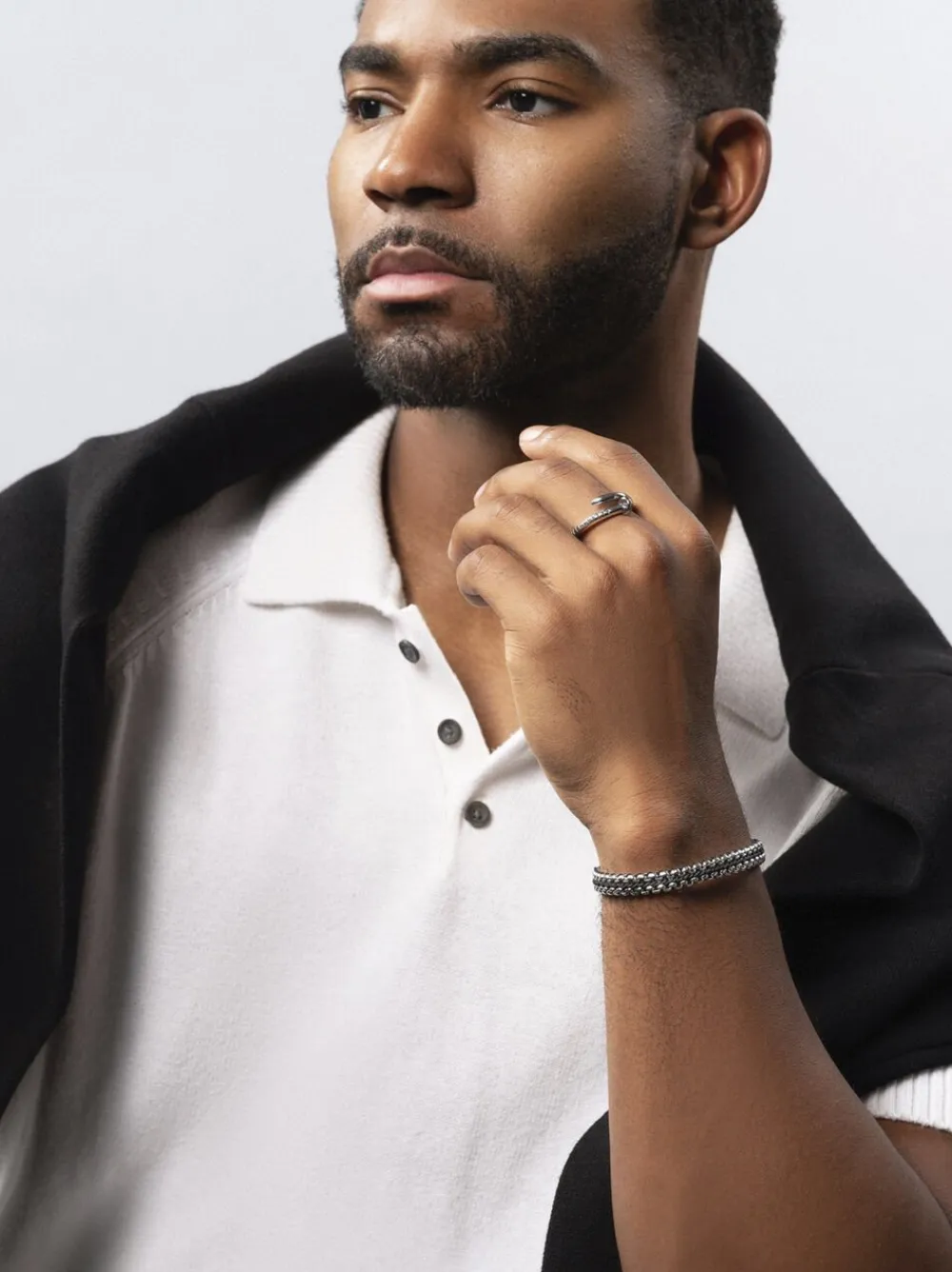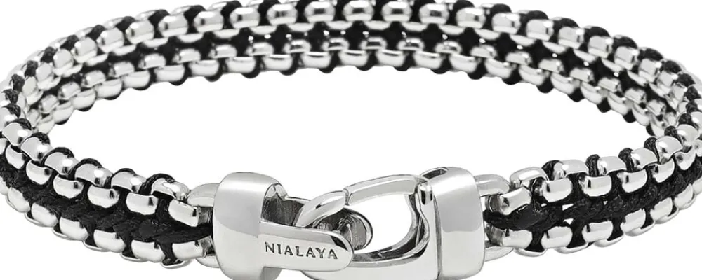 Black Woven Box-kædearmbånd til Herre i rustfrit stål med guldplade og lås i rustfrit stål med guldplade. Armbåndsbredde: 8 mm. Håndlavet i Los Angeles
