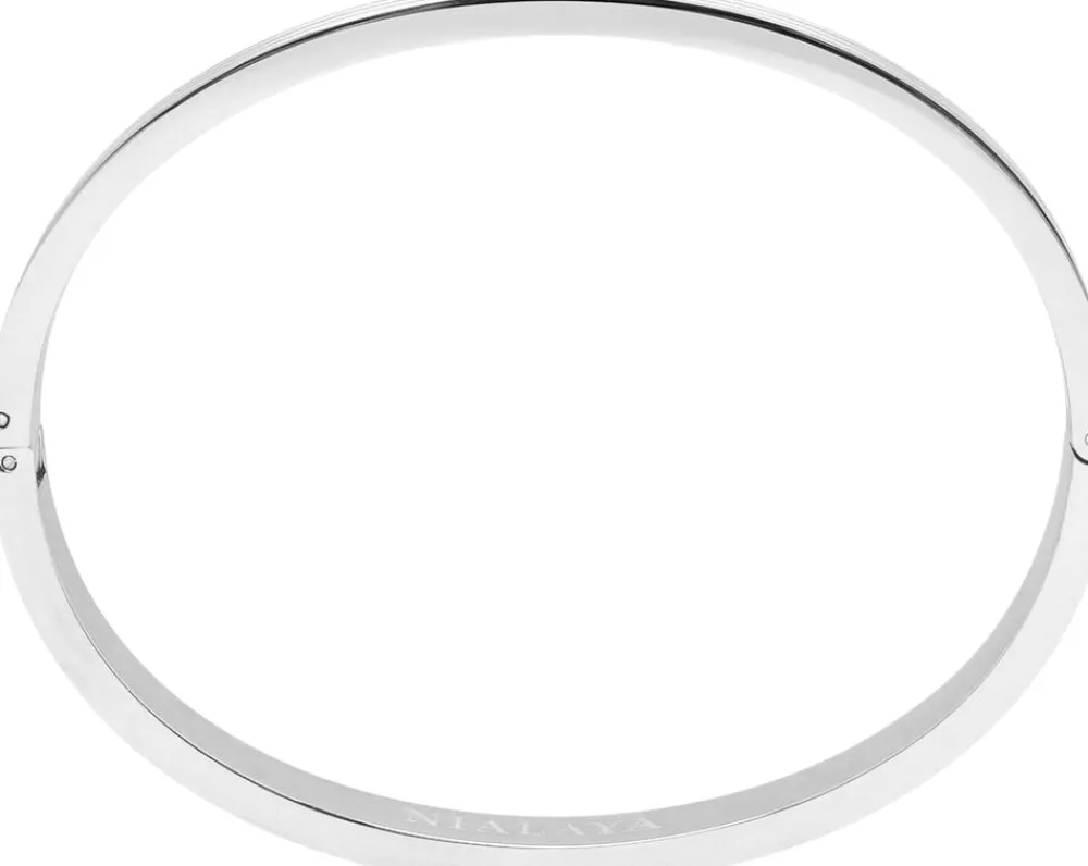 Sølv Gentleman Bangle til Herre i rustfrit stål med indgraverede linjer. Håndlavet i Los Angeles