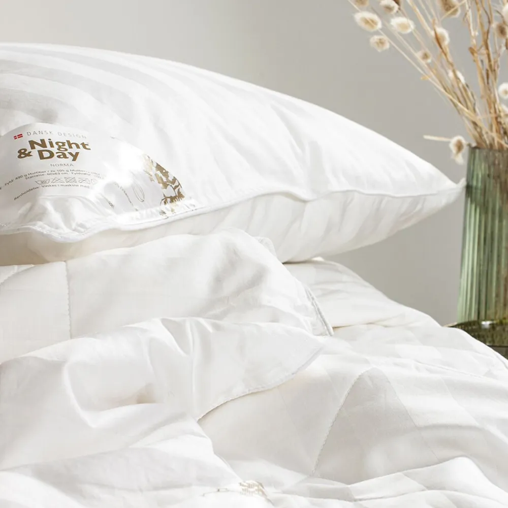 En silkedyne lægger sig tættere til kroppen og konstruktionen af silken medvirker, at fyldet ikke klumper sammen. Yderligere har silke har utroligt gode temperaturregulerende egenskaber. Silke holder på varmen når der er koldt, og virker afkølende når det er varmt, således at kroppens temperatur holdes på et jævnt niveu. På den måde opnår du en mere jævn og behagelig søvn.