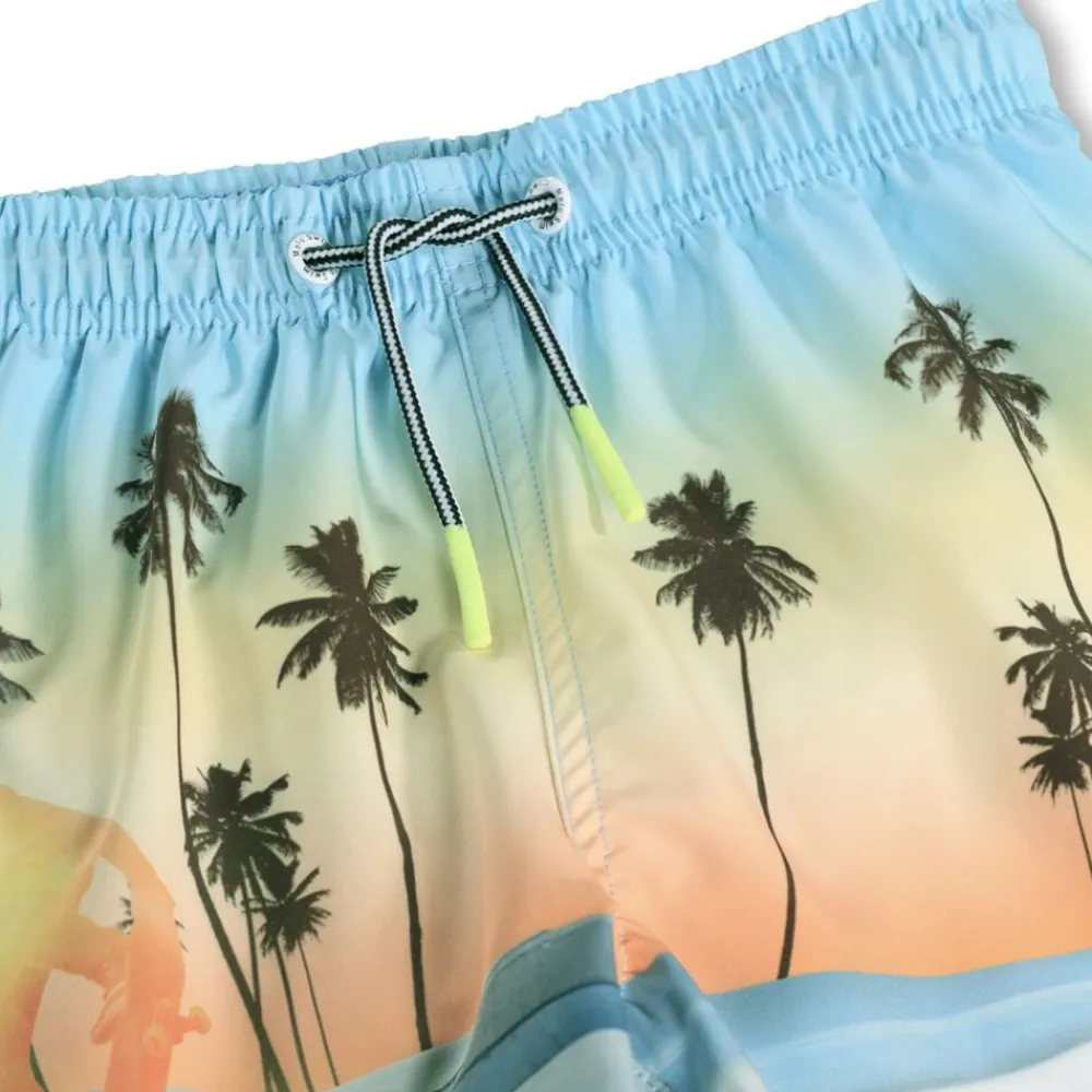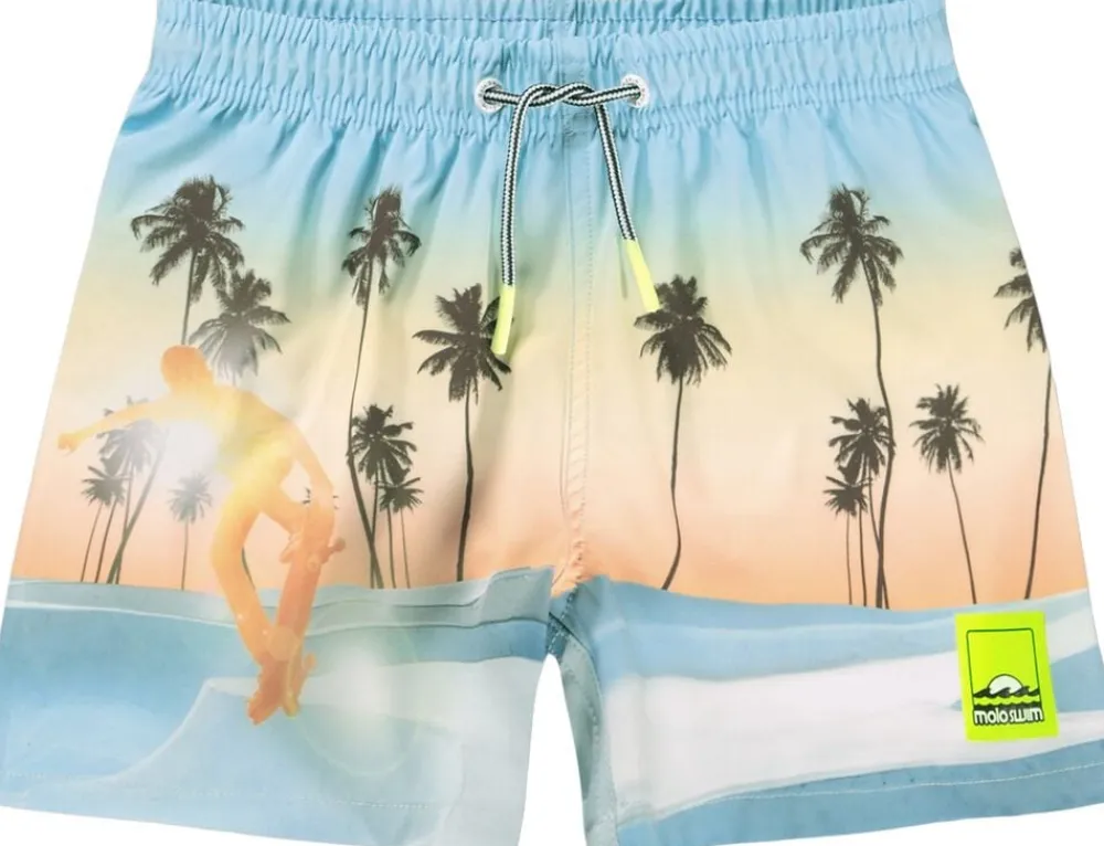 Sporty badeshorts til aktive børn med skateprint. Fremstillet af polyester, der sikrer en let og komfortabel pasform. Designet med elastik og snøre i taljen for optimal justering, bløde indershorts i mesh for maksimal bevægelsesfrihed, samt en praktisk baglomme til opbevaring. Ideelle til sjove dage ved vandet, hvor leg og aktiviteter er i centrum.