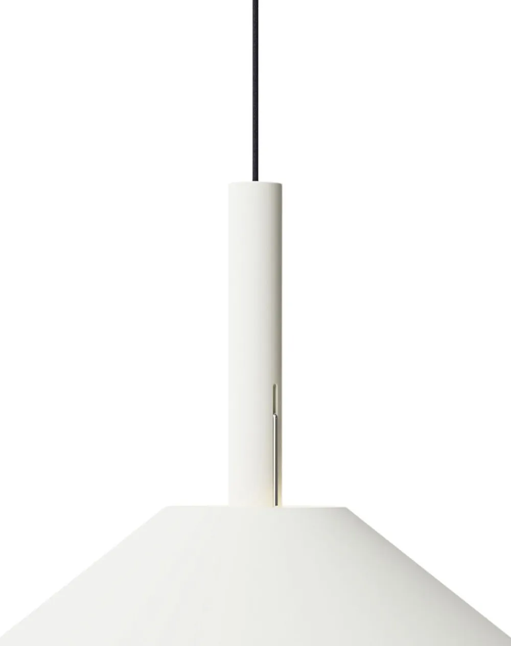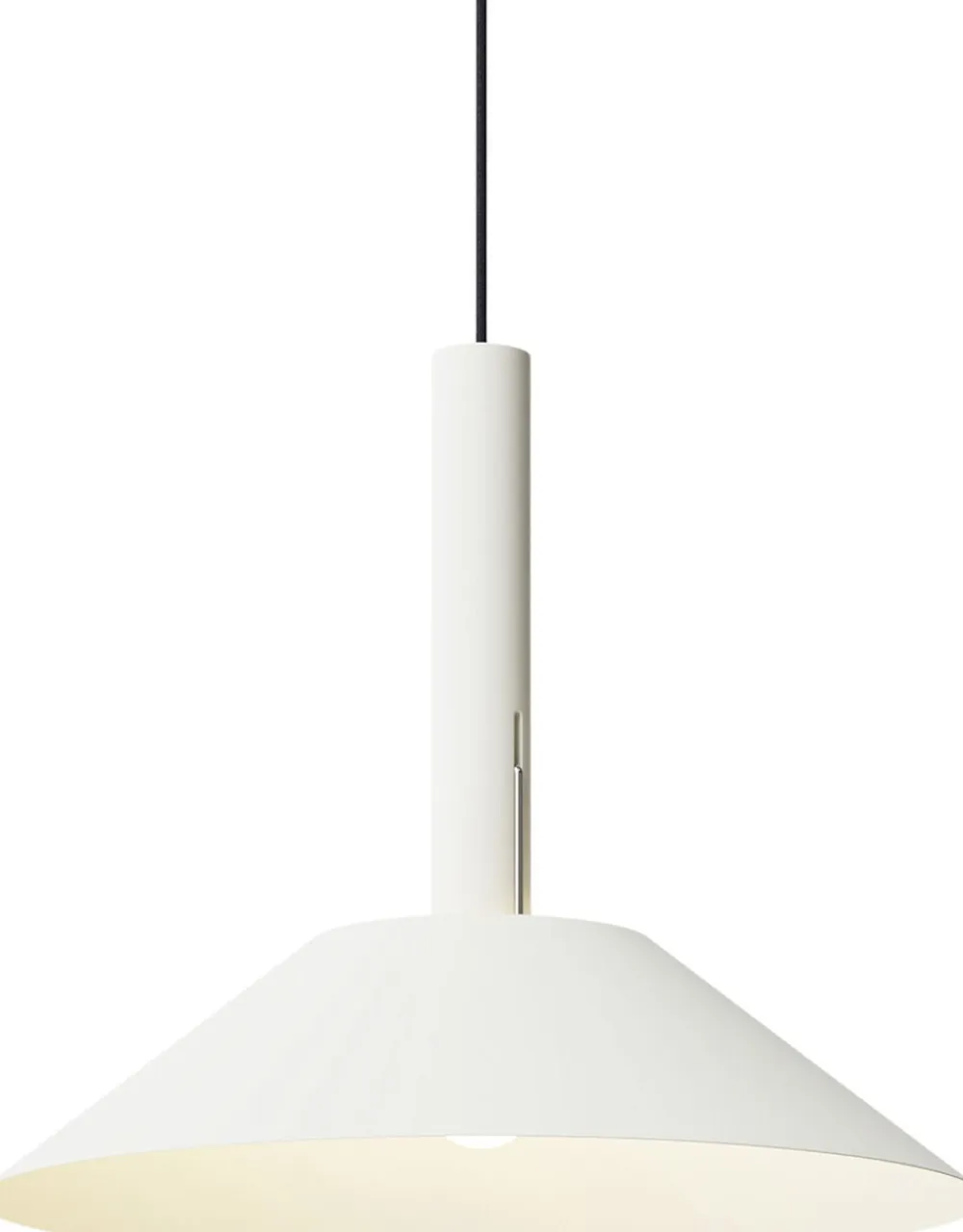 Hook” er en vedhængsfamilie, der har to grundlæggende geometriske former – en bred kegle til skyggen og en cylinder til monteringen. Gardinet hænges af en Single krog i rustfrit stål, hvilket skaber illusionen af det flydende
