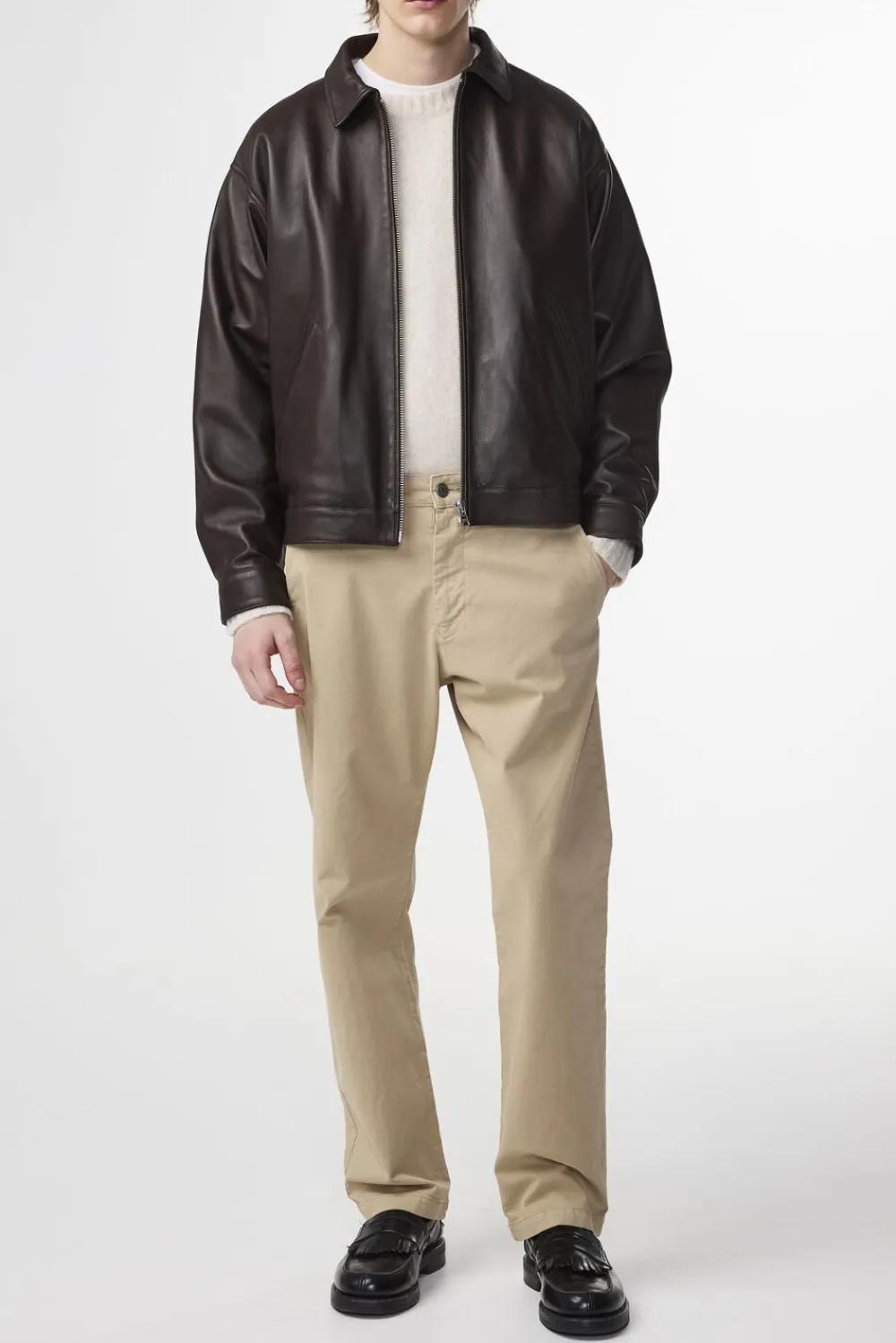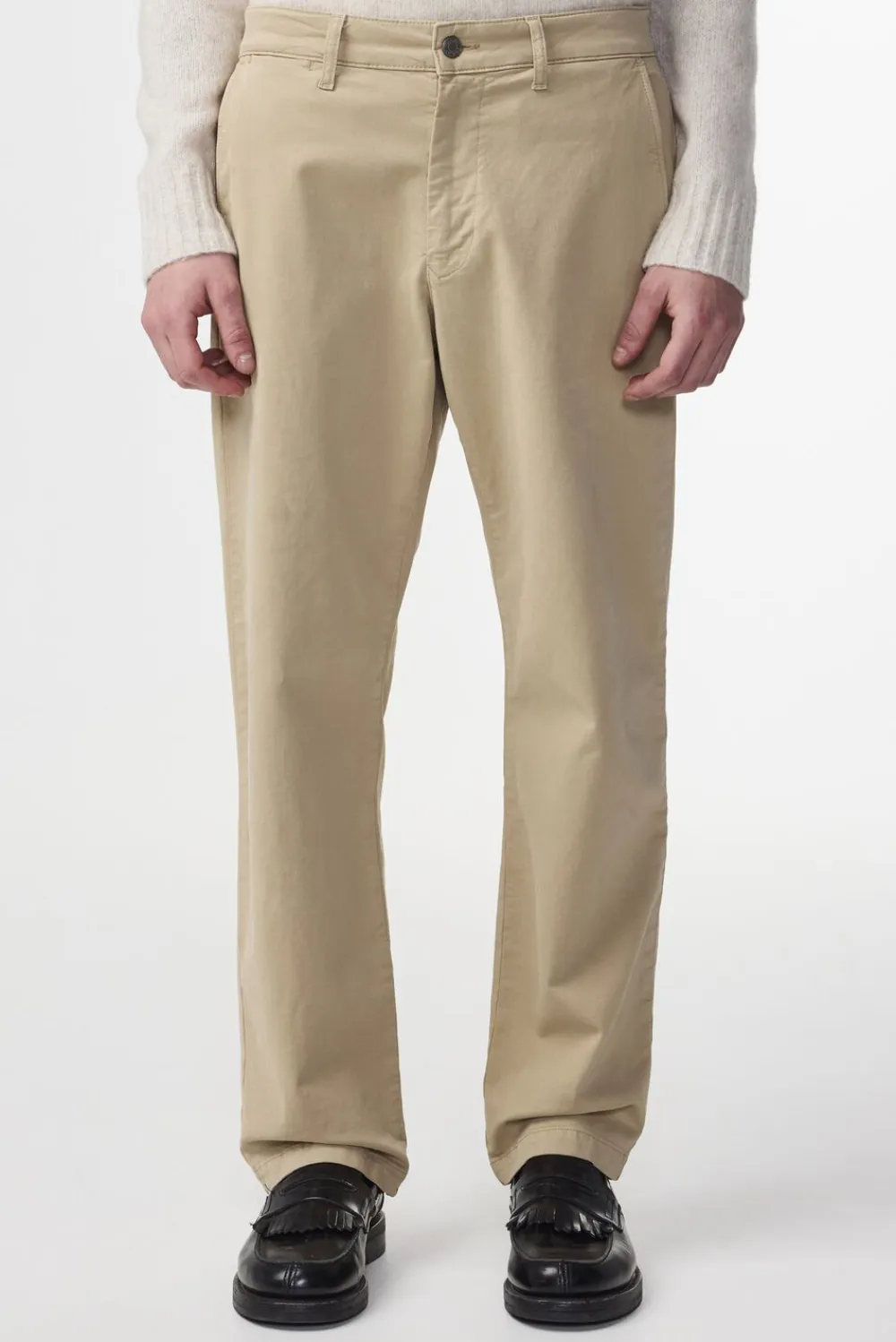 Klassiske chinos i regular fit skabt i 305 g/m2 økologisk bomuldstwill med et strejf af stretch og en blød fornemmelse. Fuldendt med lynlåslukning og NN.07-logobroderi bagpå.