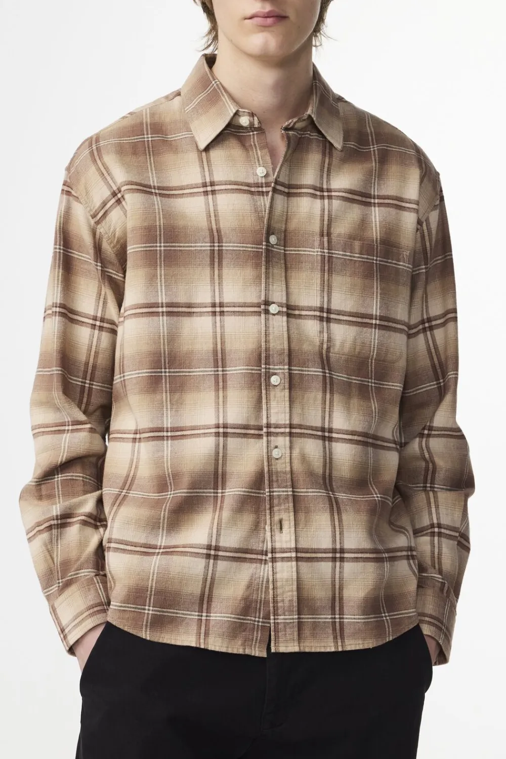 Button-up skjorte i blød bomuld og vævet i flannel twillvævning. Designet med en Single påsyet lomme og afrundet kant